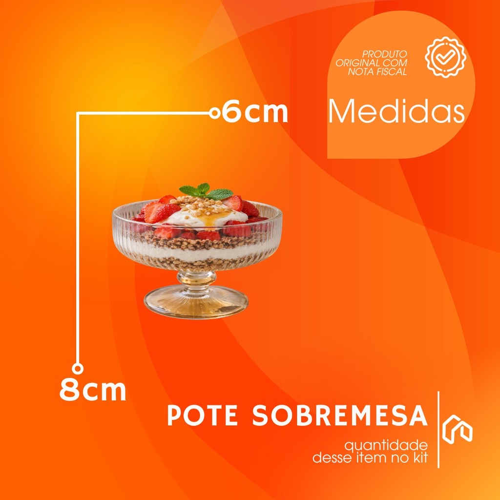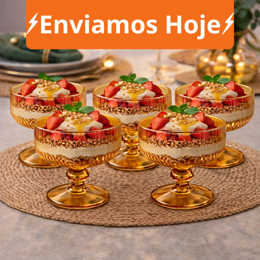 Jogo 2 a 12 Taça Sobremesa Vidro Sorvete Açai 320ml Canelado Luxo