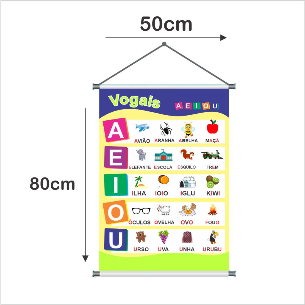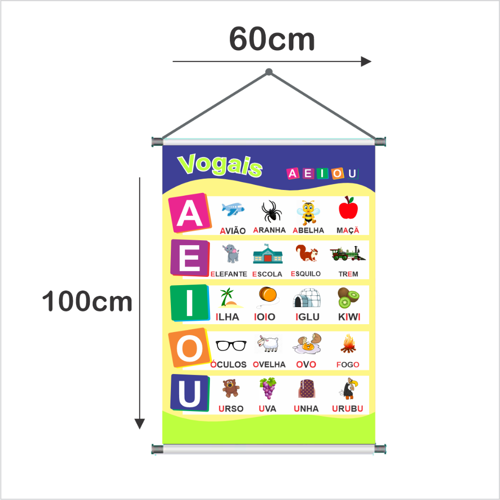 Banner Escolar Vogais A E I O U Banner Pedagógico Com Acabamento