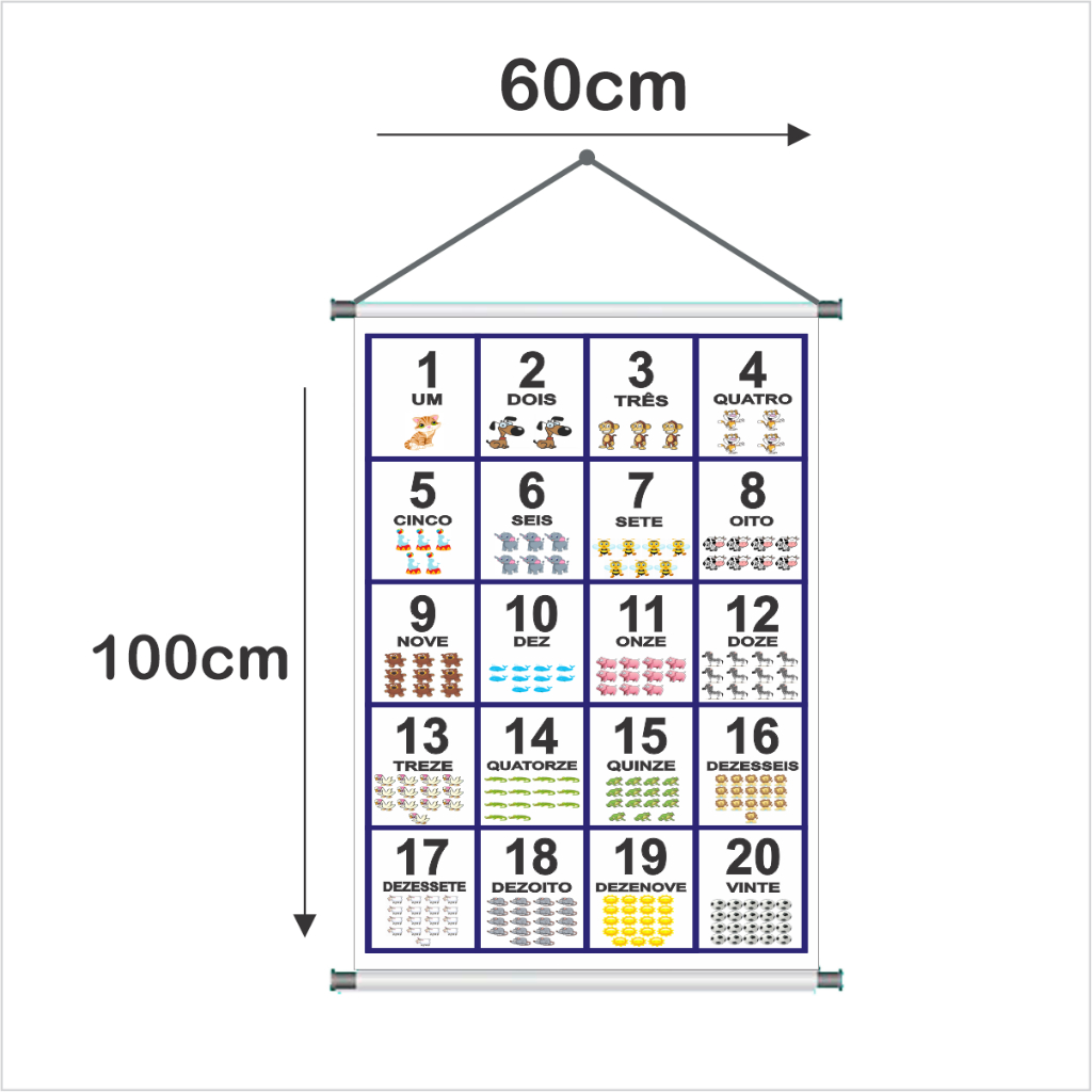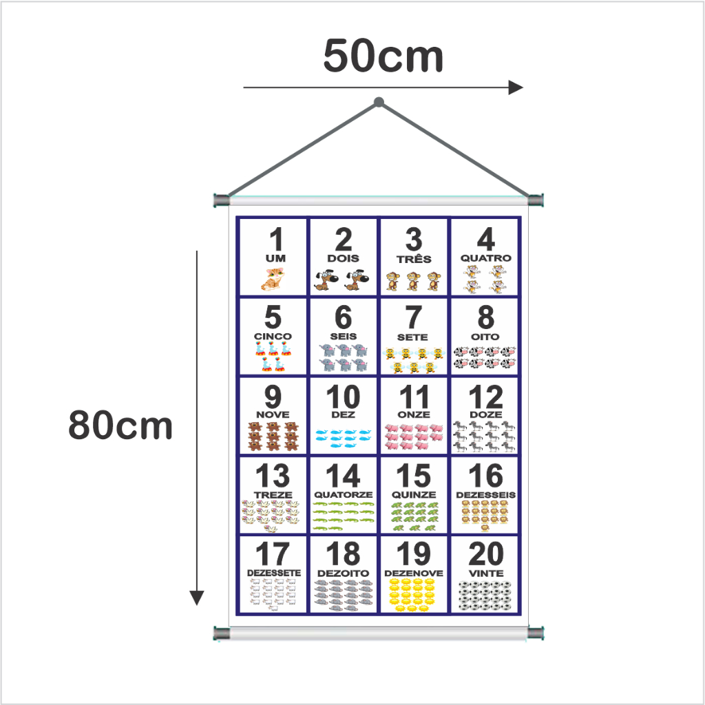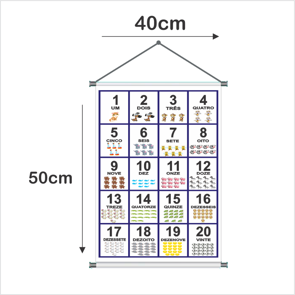 Banner Escolar Numerais 0 a 20 Banner Pedagógico Com Acabamento
