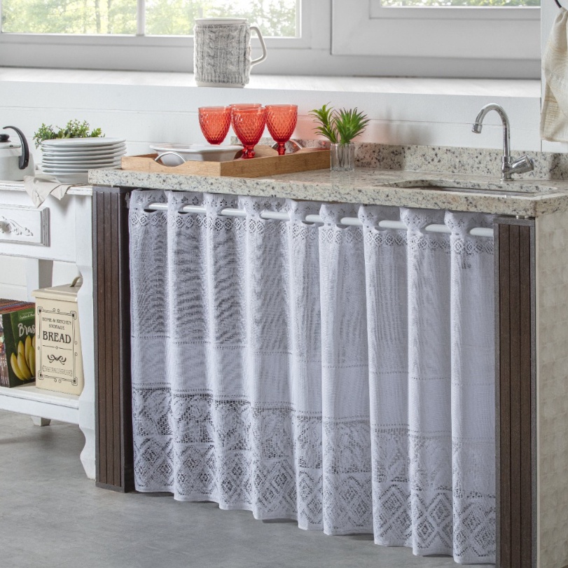 Cortina Pia de Cozinha Renda 0,80cm X 1,50cm Branca