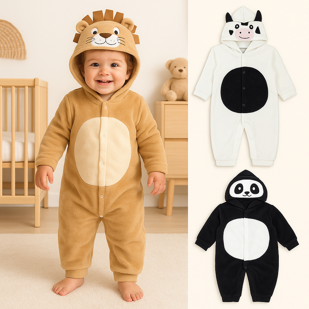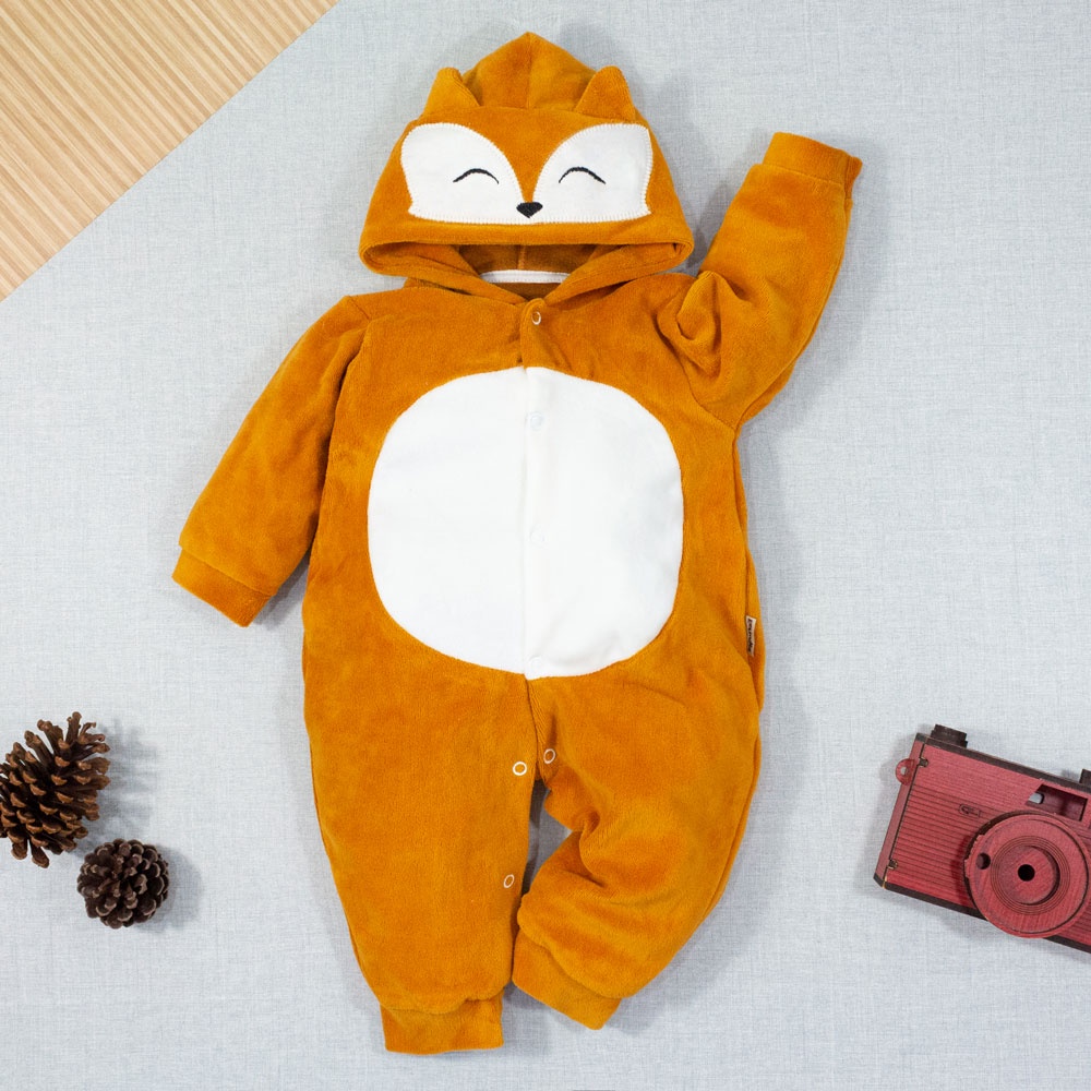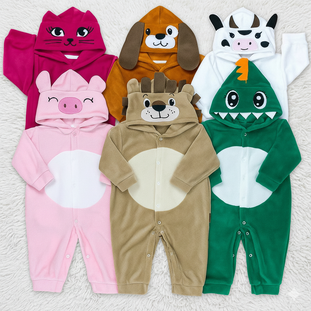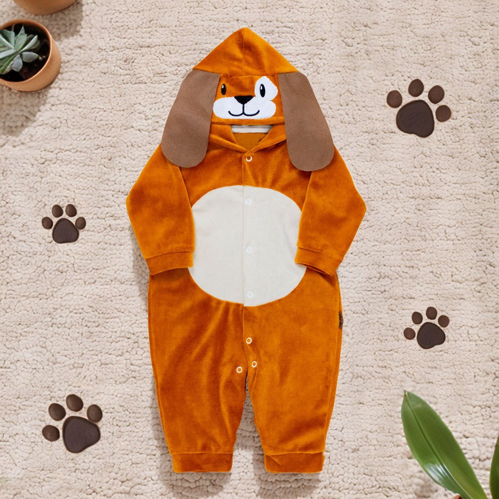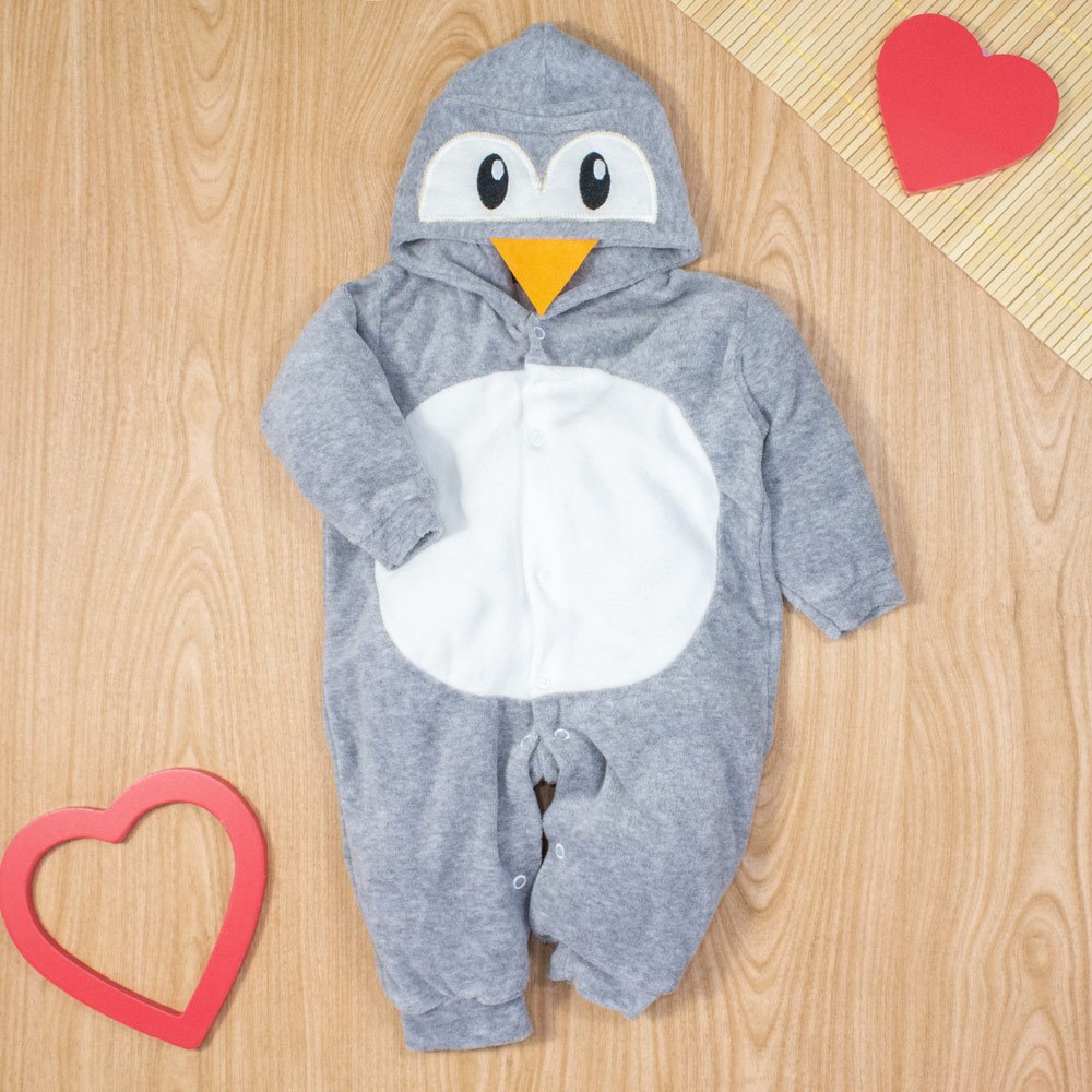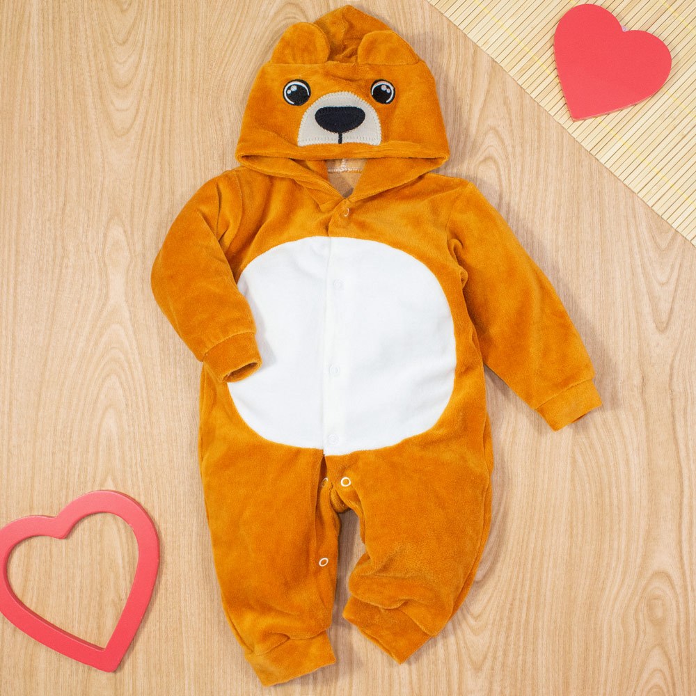 Macacão de bebê Plush Capuz Bichinhos - Até 12 meses