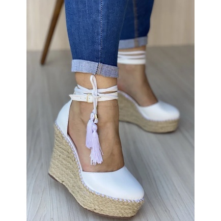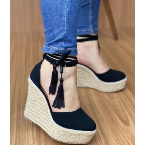 Sandália Feminina Anabela Plataforma De Luxo Fechada Lançamento 2025