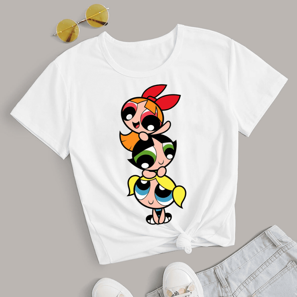 T-shirt As Meninas Superpoderosas Blusinha Básica Estampada Branca