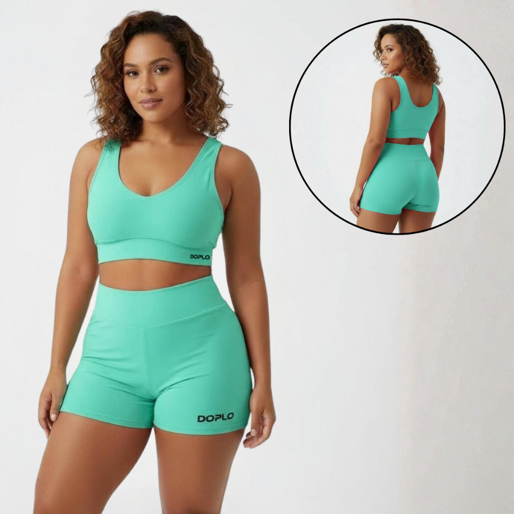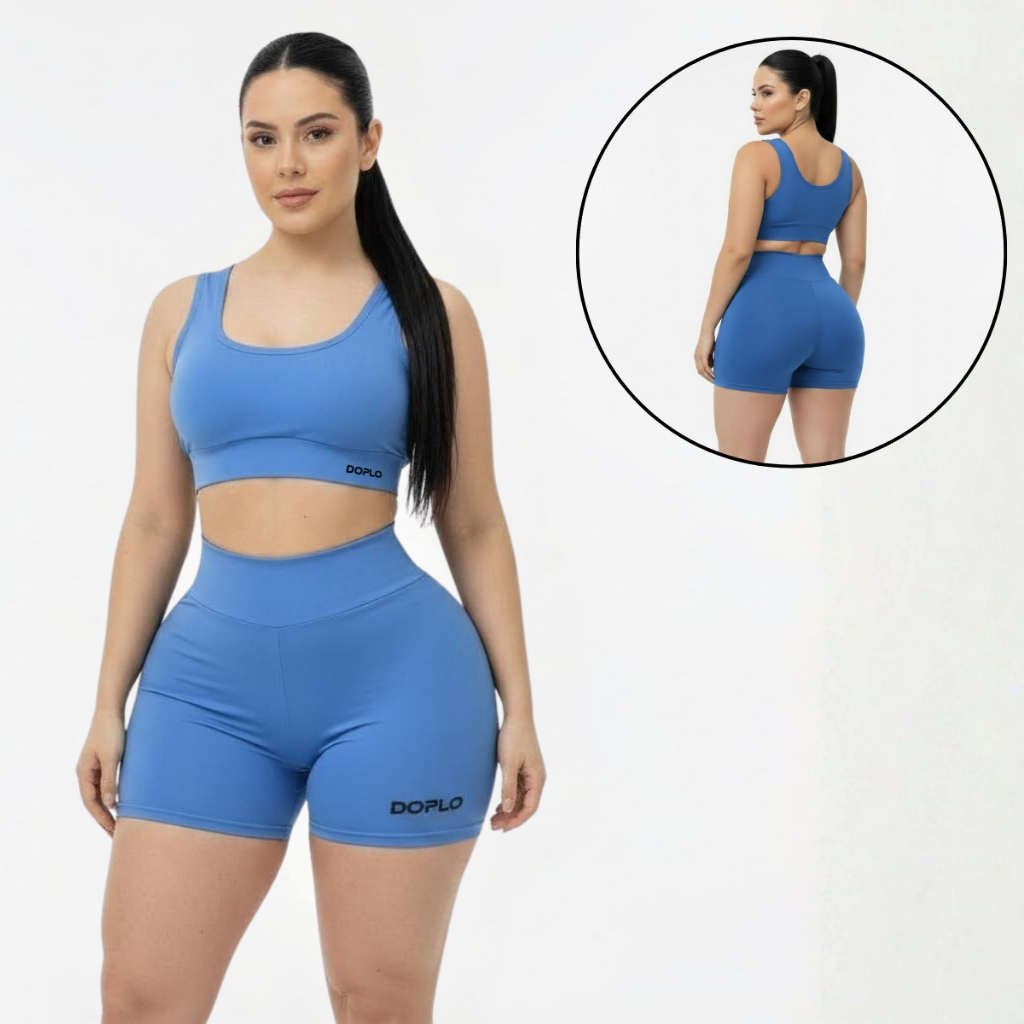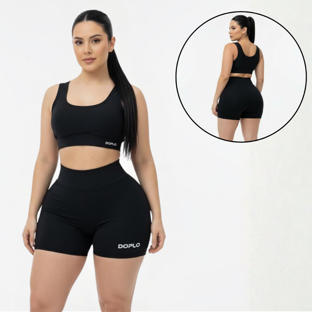 Conjunto Short e Top Feminino Treino Alta Academia Fitness Short Cintura alta Top Academia sem bojo