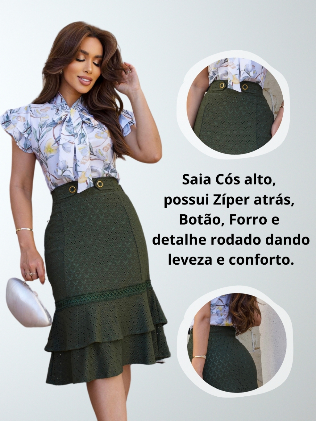 Saia Secretária Lese Midi Festa Babado Moda Social Evangélica