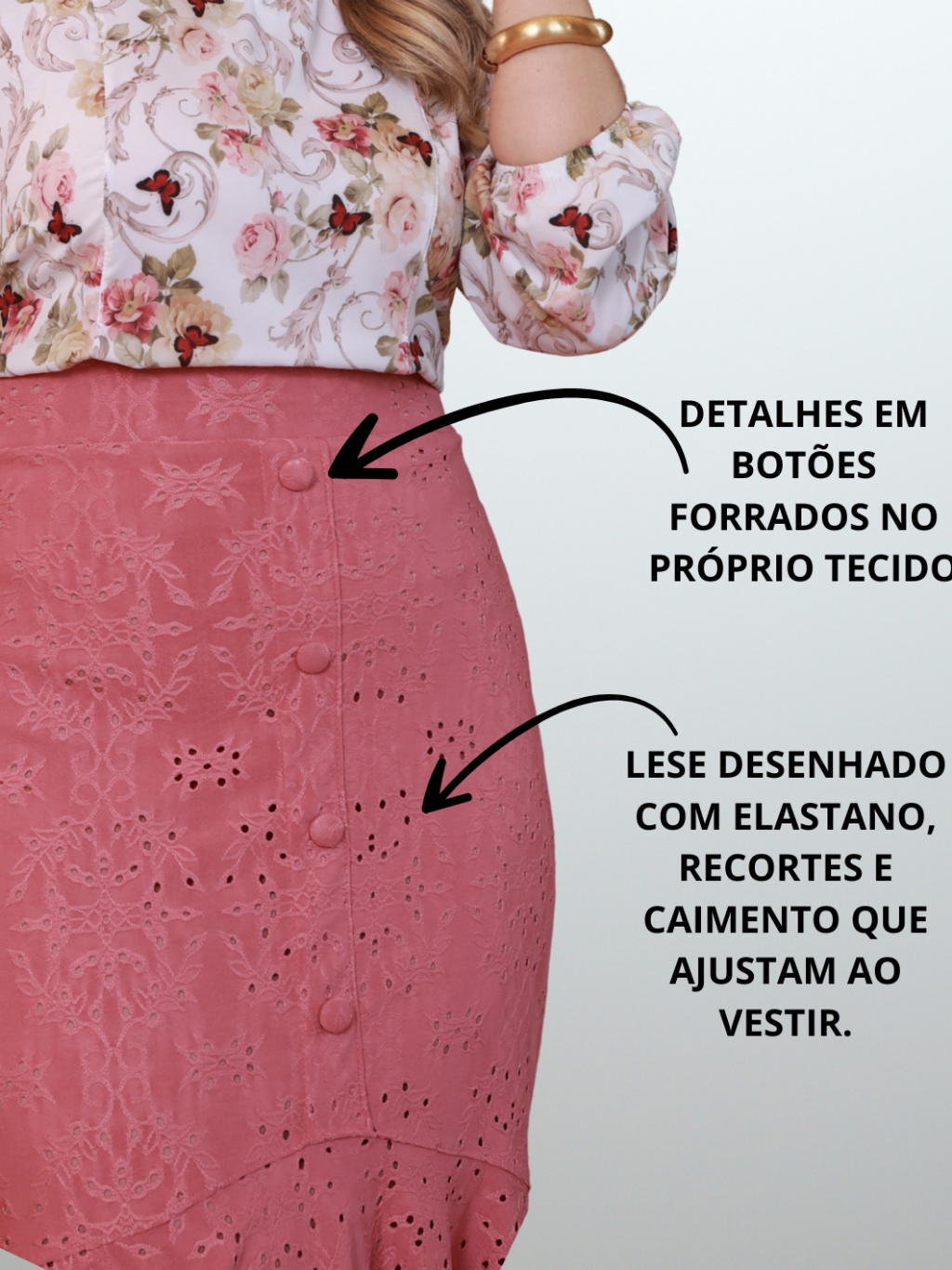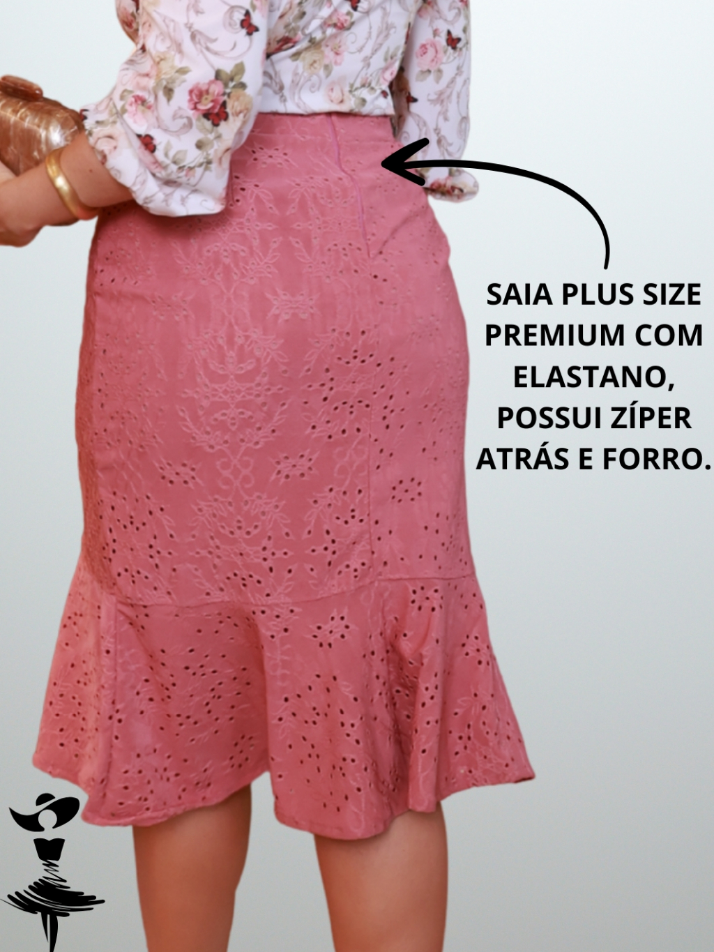 Saia Feminina Plus Size Forrada com Elastano Comportada com Botões Evangélica Confortavél