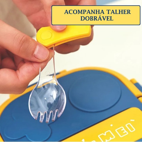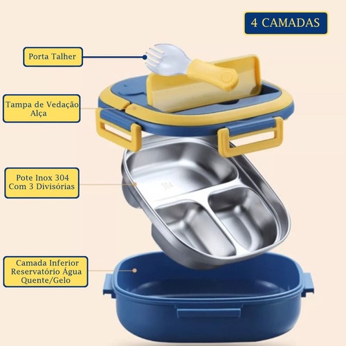 Marmita Pote Lancheira Térmica Infantil Com Colher de Aço Inox 3 divisórias Recipiente para Comida