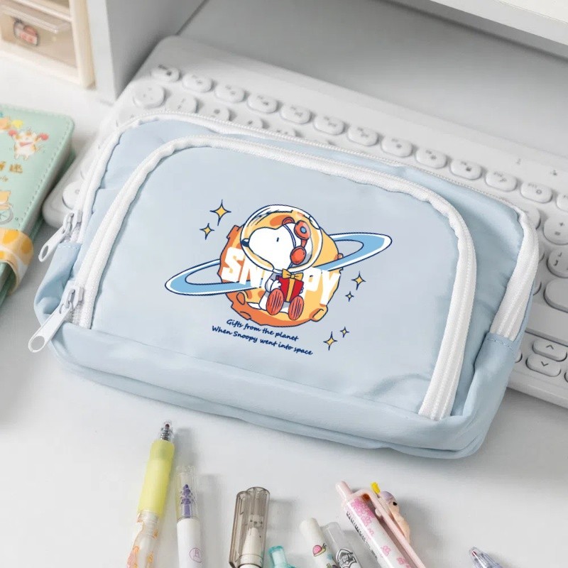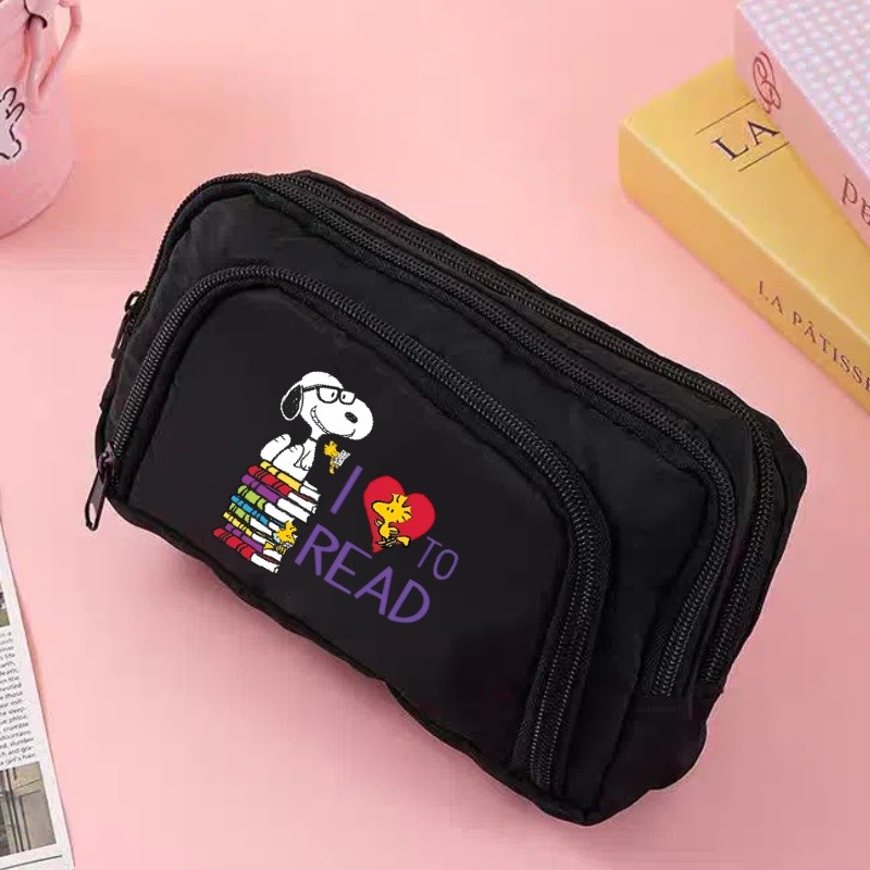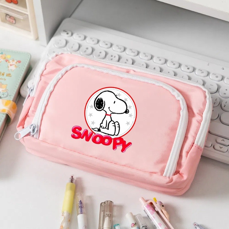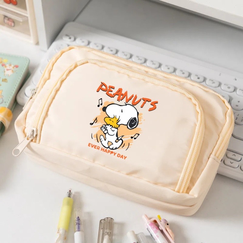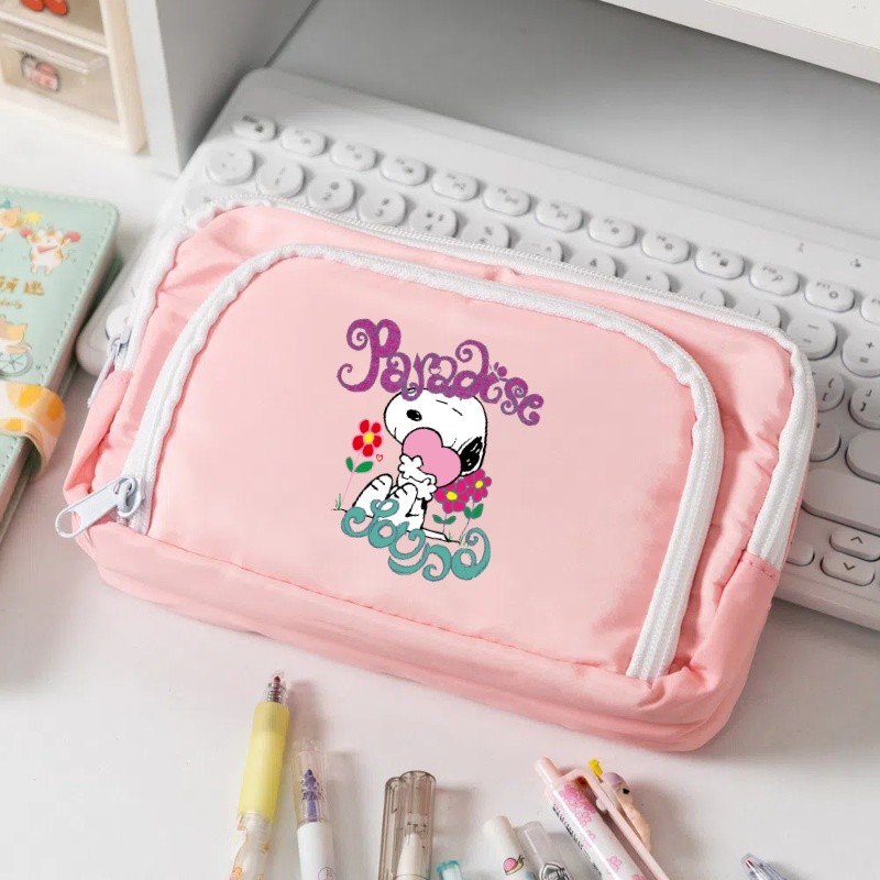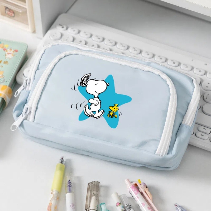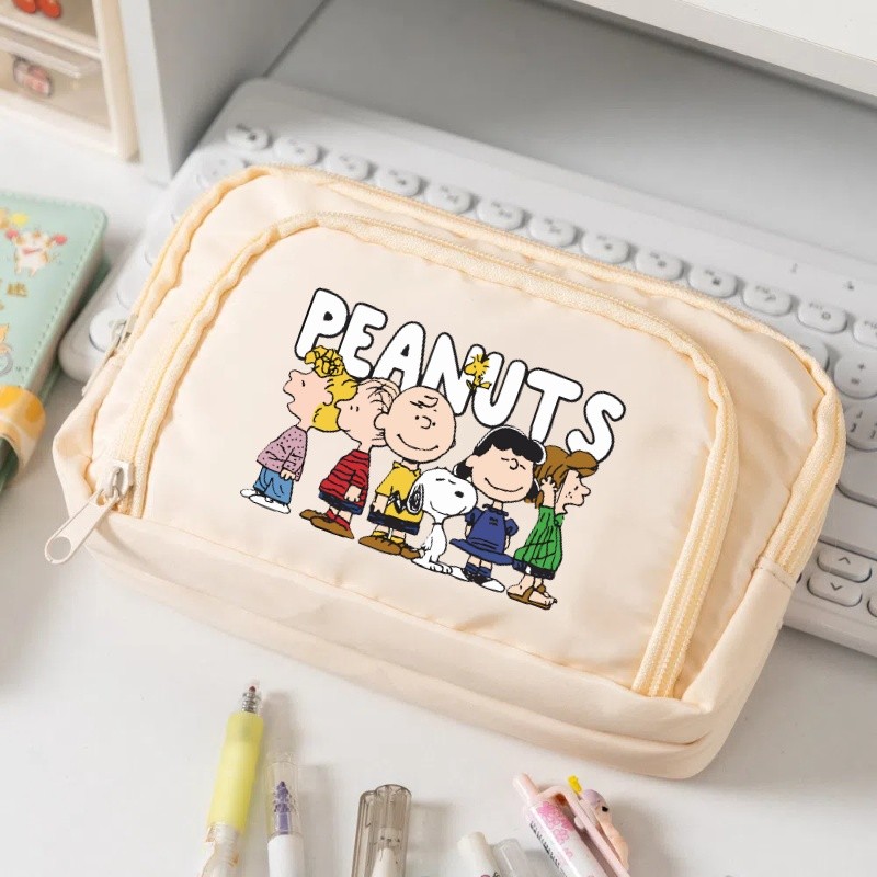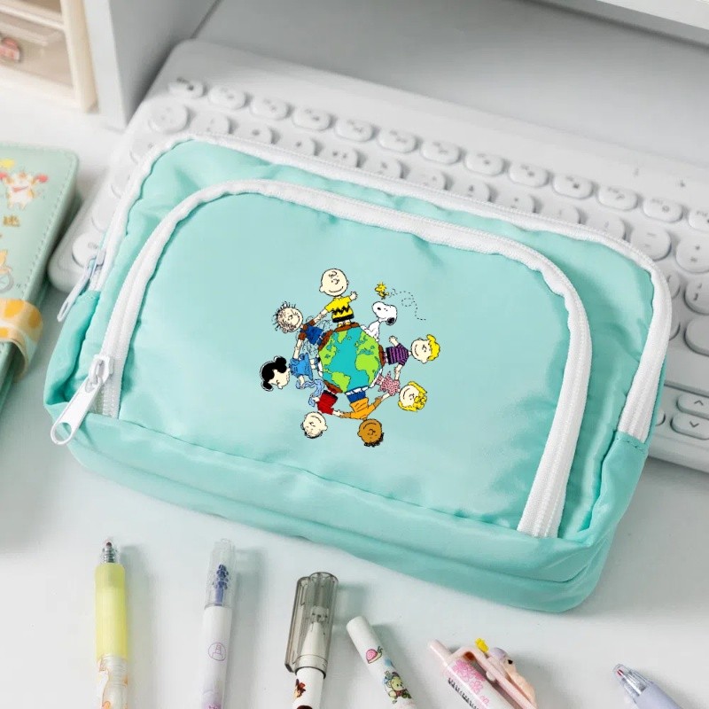 Snoopy Nova Bolsa De Papelaria De Grande Capacidade Para Meninas E Meninos , Armazenamento Lona Japonesa Com Zíper De Tr