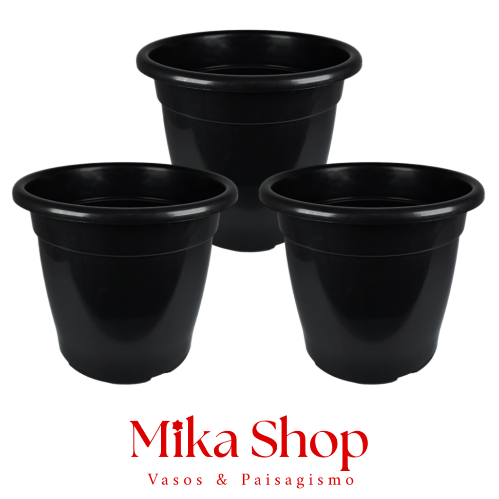 Kit até 5 Vasos Redondos Grande Preto 15 Litros Horta Planta Casa Jardim 2/3/4/5