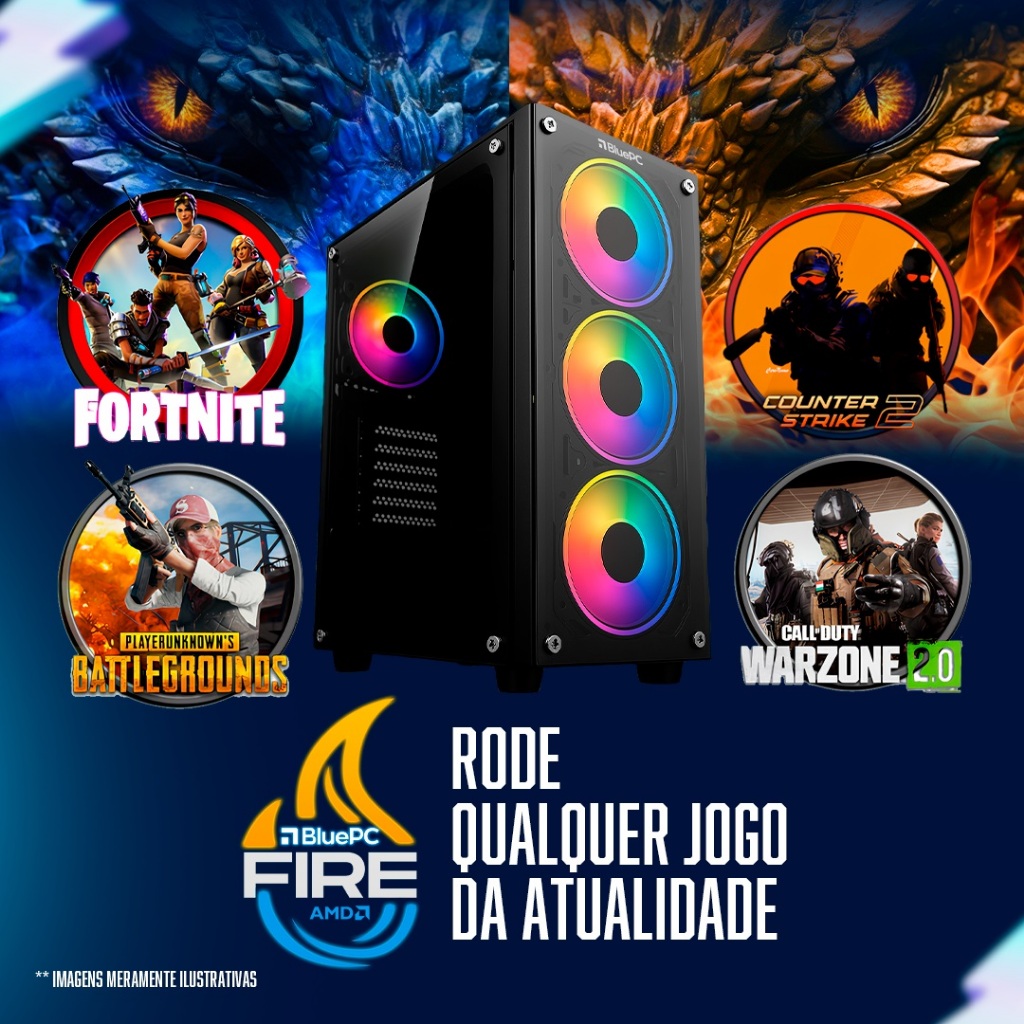 PC Gamer BluePC FIRE Ryzen 7 5700G, 32GB, Radeon VEGA, SSD 512GB, 500W, Monitor 20" - PG2E-1028FI