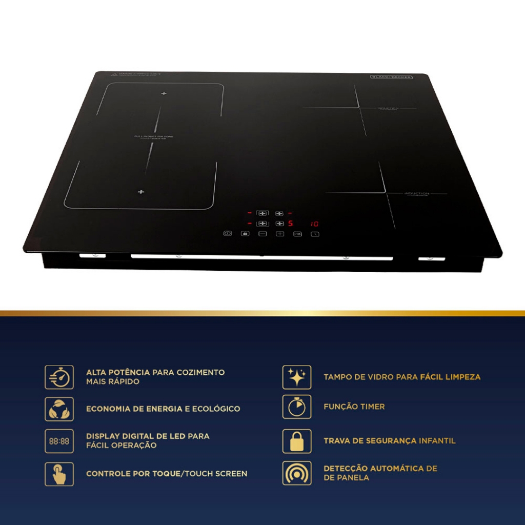 Cooktop De Indução 4 Zonas Black Decker, Full Zone, Power Booster, 220V 7200W - BXICHCPB4BFZ