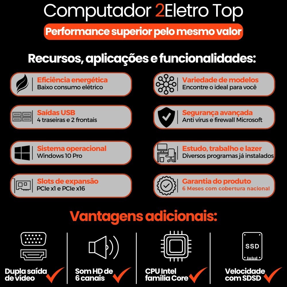Computador Completo 2Eletro Top Intel Core i5, 16GB , SSD 1TB, Bivolt, Monitor 20" LED - CD2E-0115TO