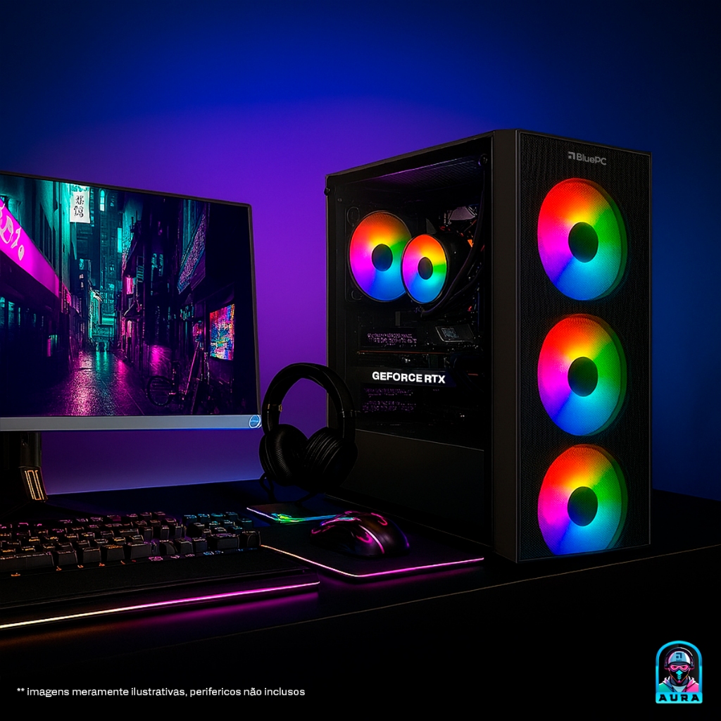 PC Gamer AURA BluePC - Intel i5 14400F, B760, RTX 5060 8GB, 32GB, SSD 1TB,600W - PGBP-AUR135