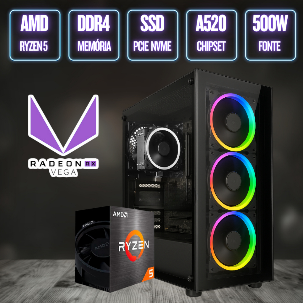 PC Gamer Completo BluePC FORCE, Ryzen 5, Radeon RX, 8GB, SSD 256GB, 500W, Monitor 20" - PGBP-FOR106