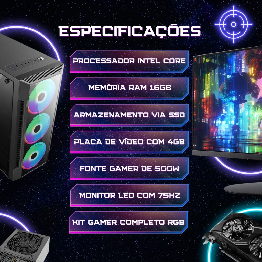 PC Gamer Completo 2Eletro Shot, Intel Core i5,16GB,Radeon RX 4GB,240GB, 500W, LED 20" - PG2E-0110SH