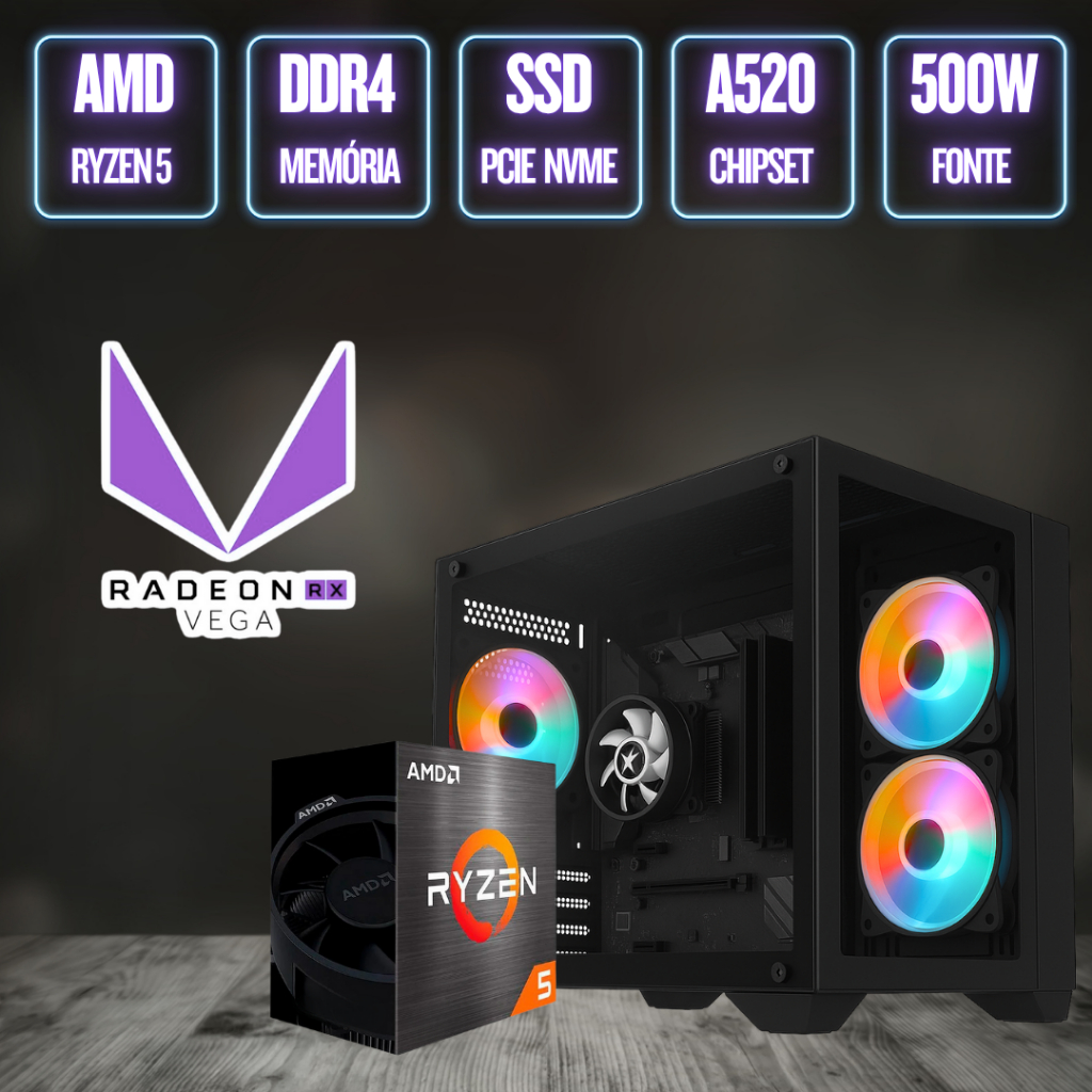 PC Gamer Completo BluePC FORCE, Ryzen 5, Radeon RX, 8GB, SSD 256GB, 500W, Monitor 20" - PGBP-FOR124