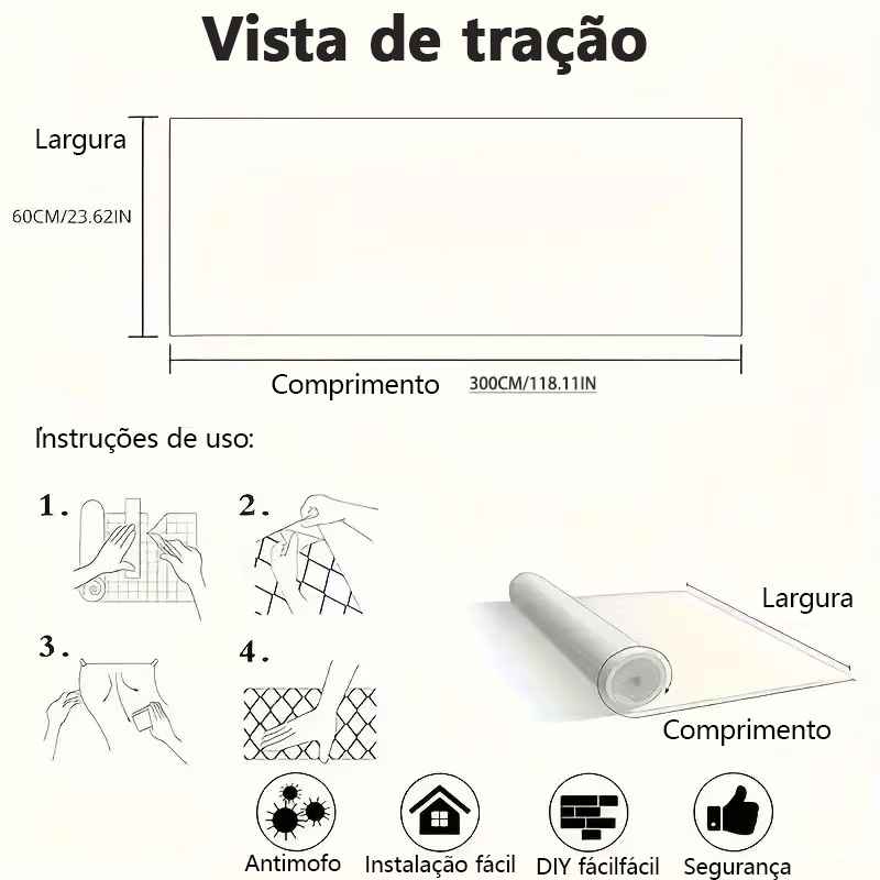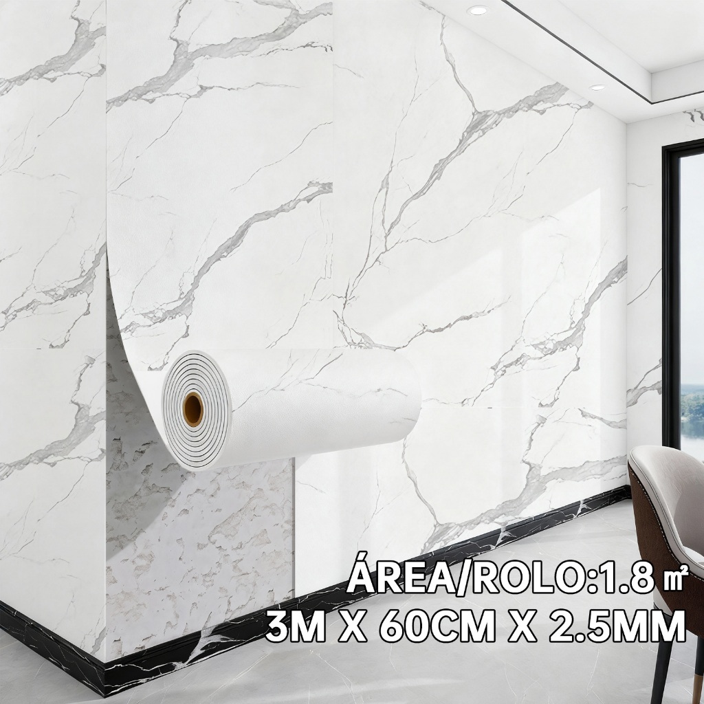 Papel de Parede Adesivo Mármore 3Mx60cmx2.5mm/1.8㎡ Lavável Cozinha Vinil Sala Quarto Vinílico Banheiro