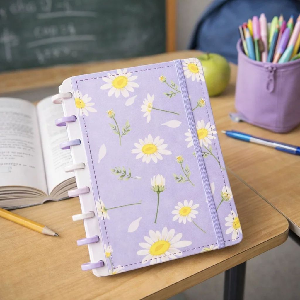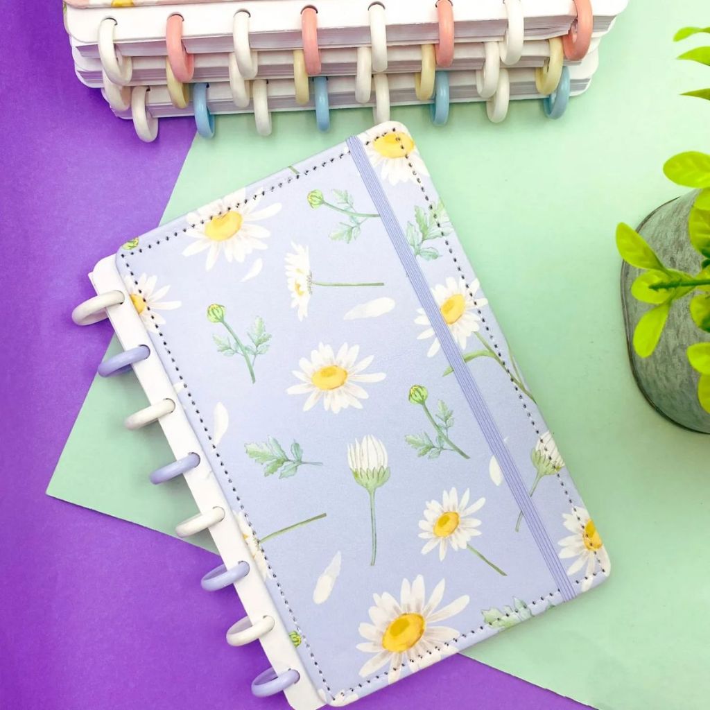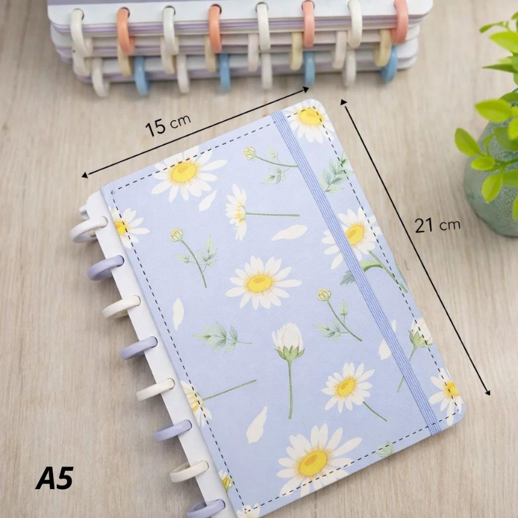 Caderno de Disco Agenda Margaridas Flores A5 80 Folhas Bloco de Notas Faculdade Escola Anotações