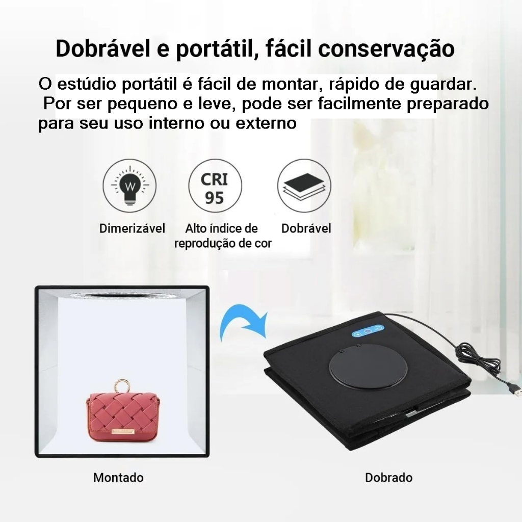 Cabine Fotografica Foto 40x40 Kit Iluminação Softbox Mini Estudio Luz Continua