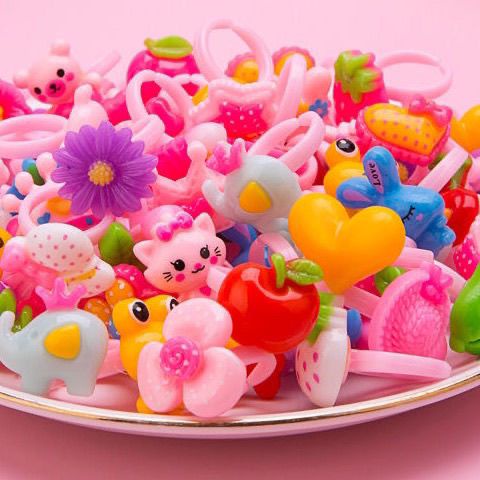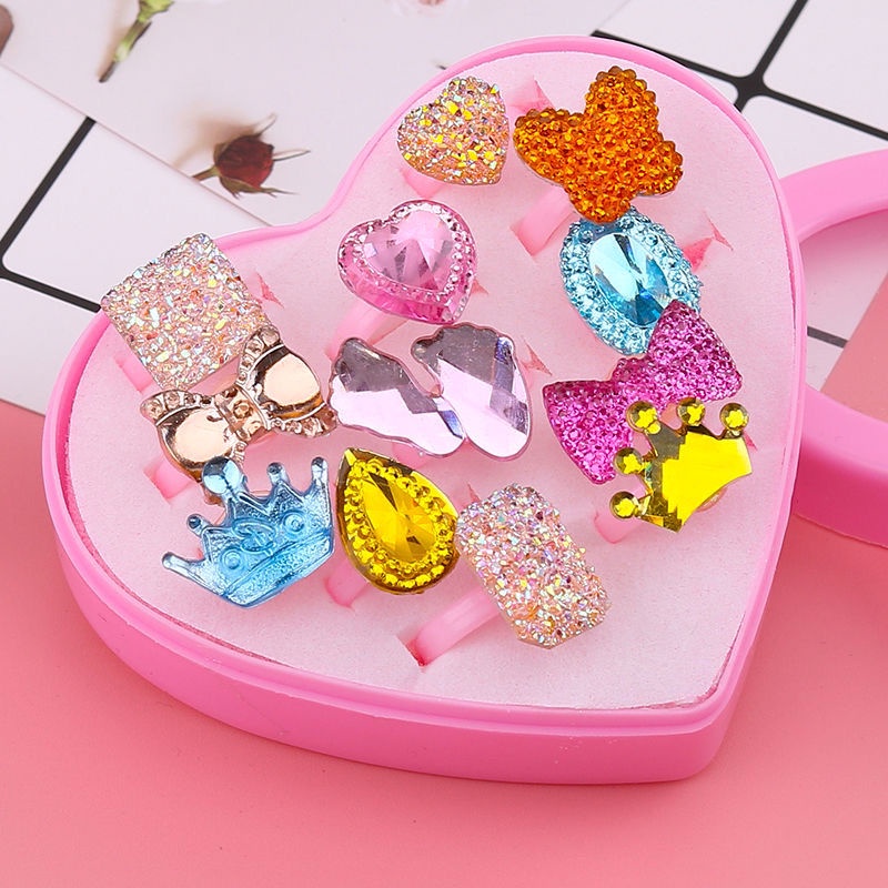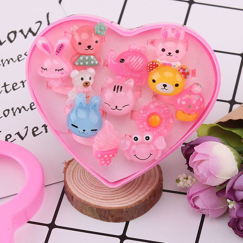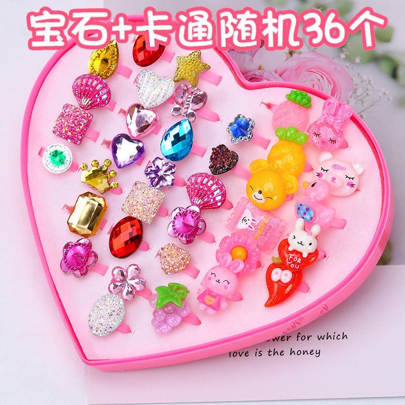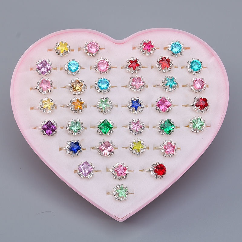 50pcs Anéis/37Pcs Conjunto Frozen aisha Anna Jewelry Cute cat Ajustáveis Para Crianças De Presente Com Caixa Aleatória