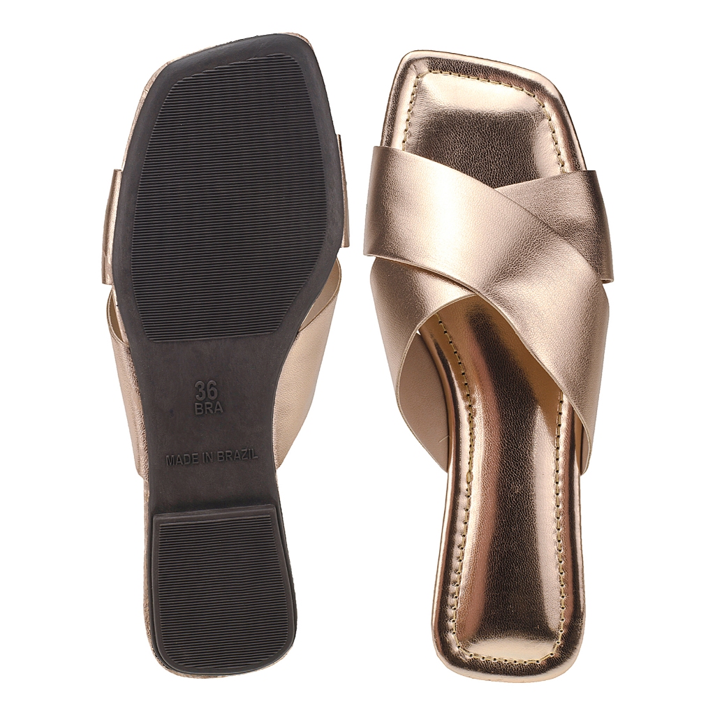 Rasteirinha Feminina Sandalia Feminina Rasteirinha Chinelo Feminino Slide Com Tiras Cruzadas Metalizadas