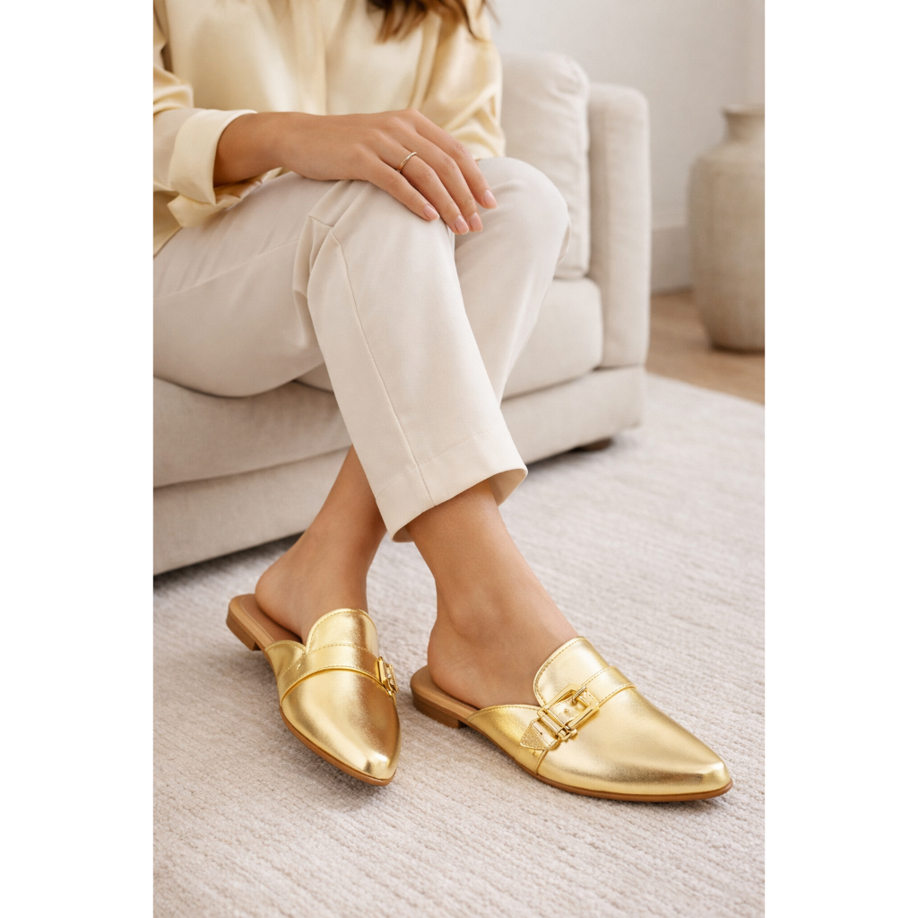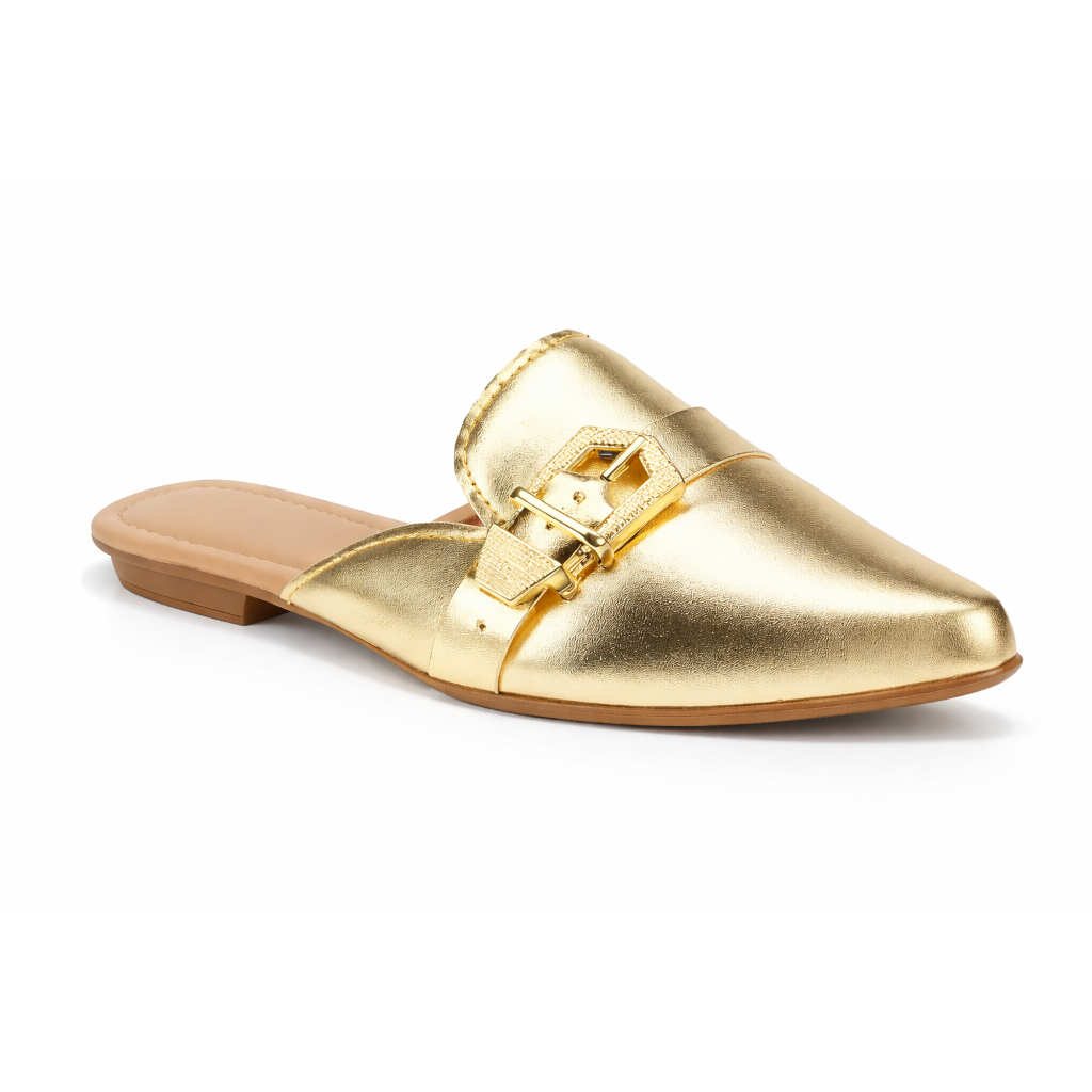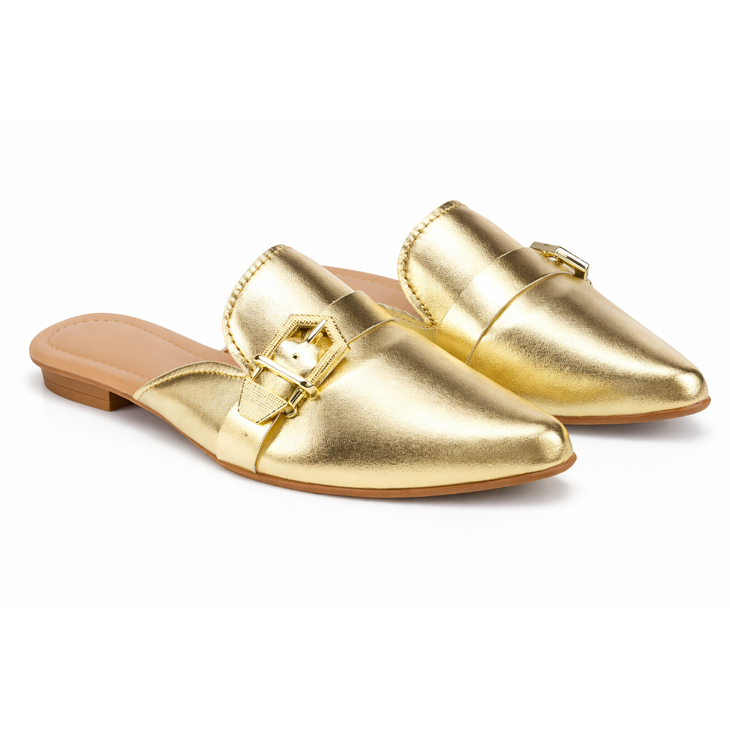 Mule Feminino Bico Fino Sapatilha Sapato Feminino Detalhes Metalicos de Fivelas Sándalia Feminina Mule Estilo Tamanco