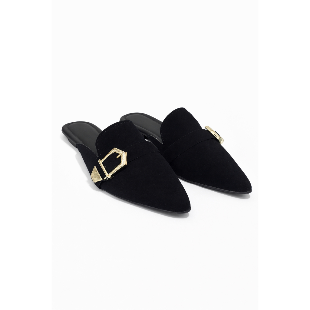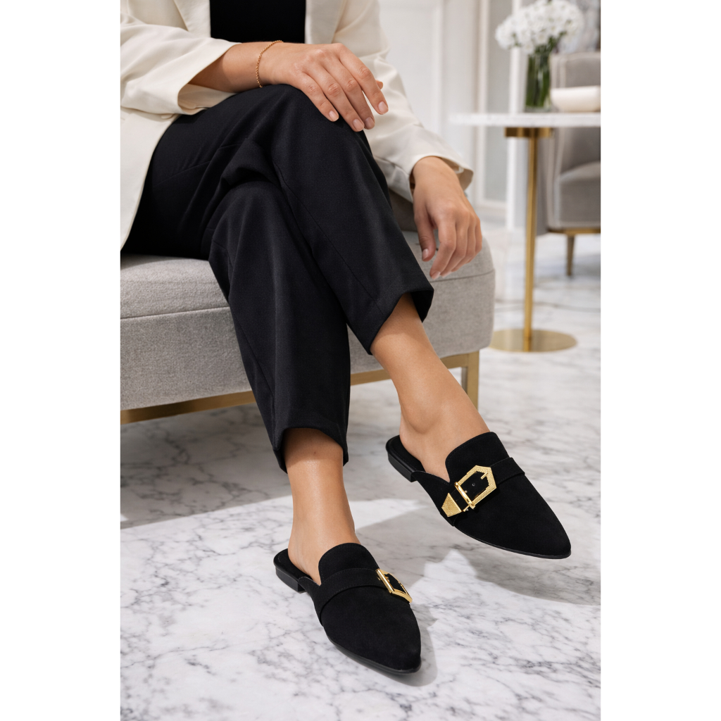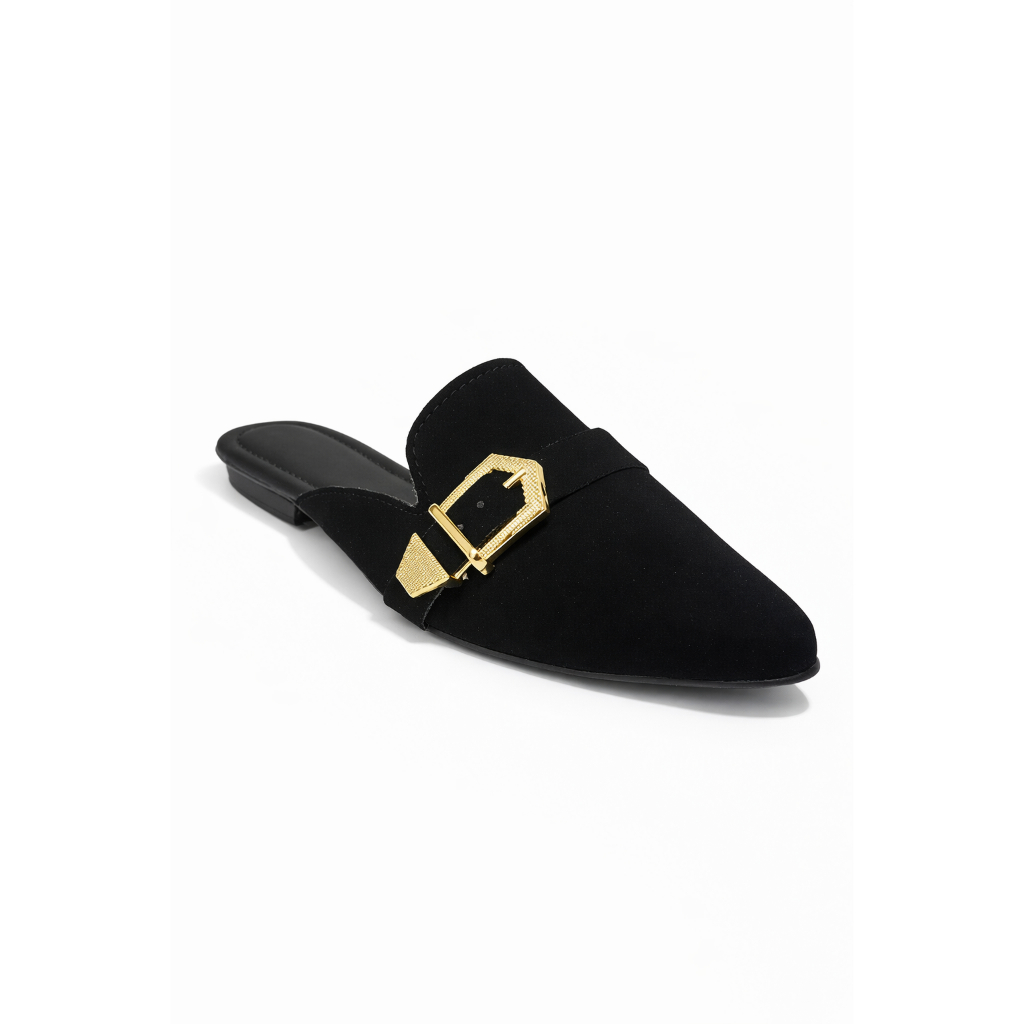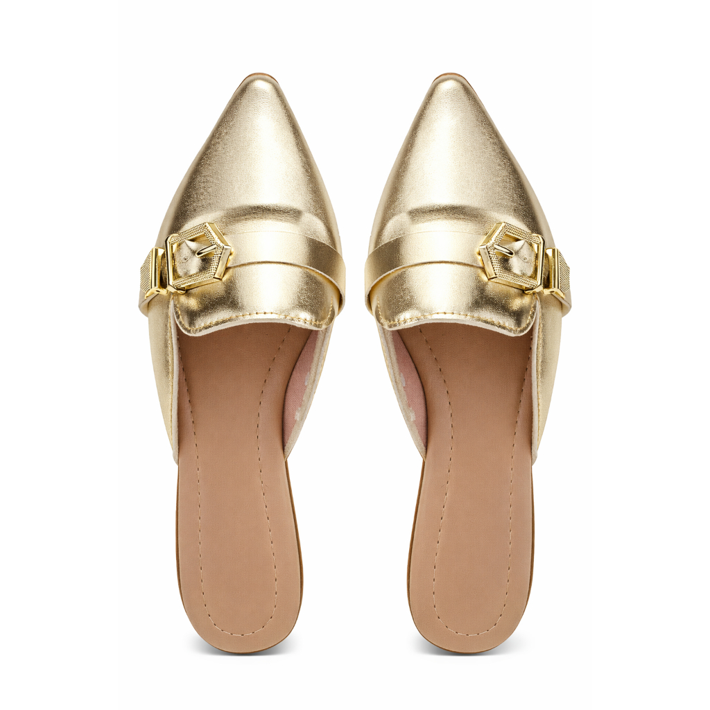 Mule Feminino Bico Fino Sapatilha Sapato Feminino Detalhes Metalicos de Fivelas Sándalia Feminina Mule Estilo Tamanco