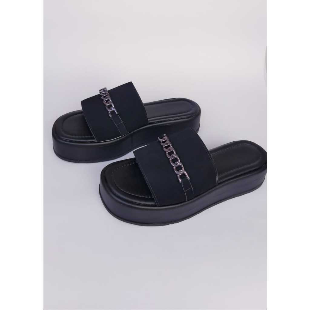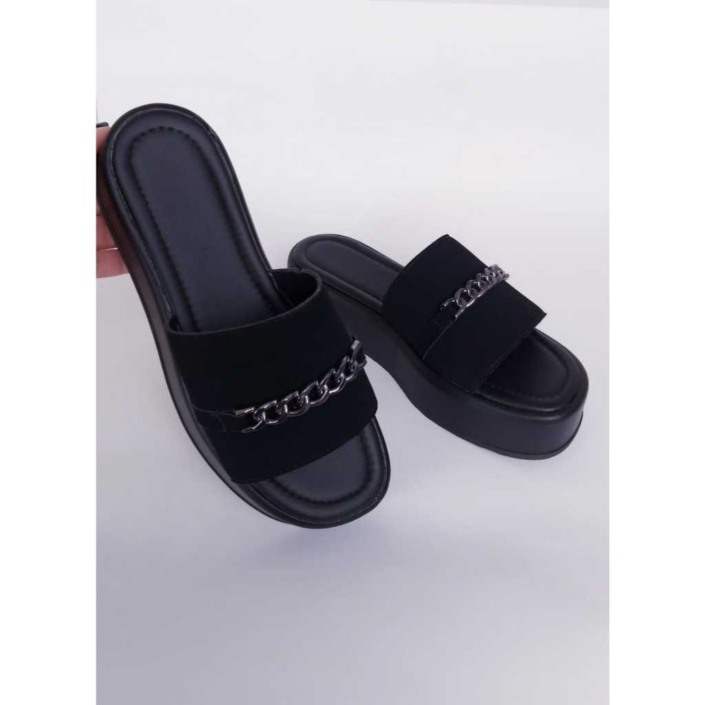 Sandalia Feminina Tamanco Flatform Birken Feminina Enfeite Correntes Metais Papete Feminina Solado Plataforma