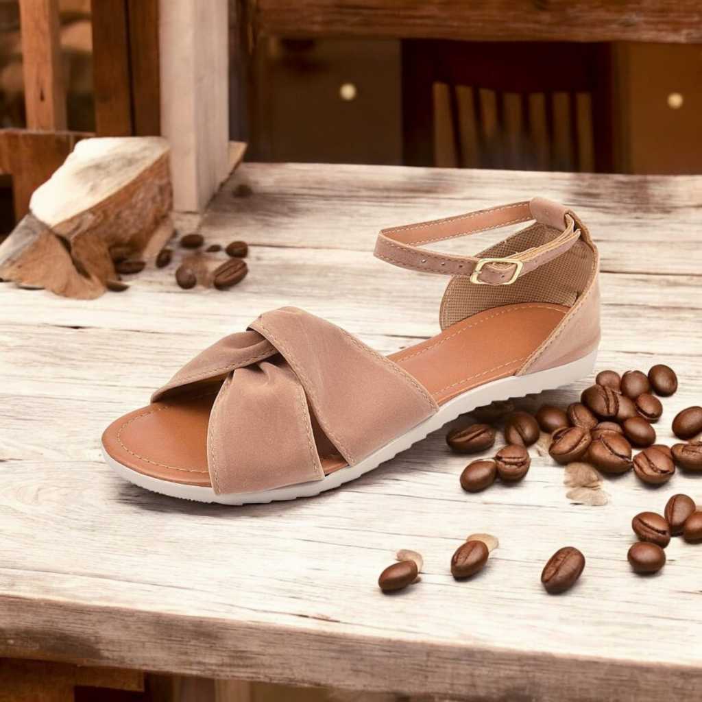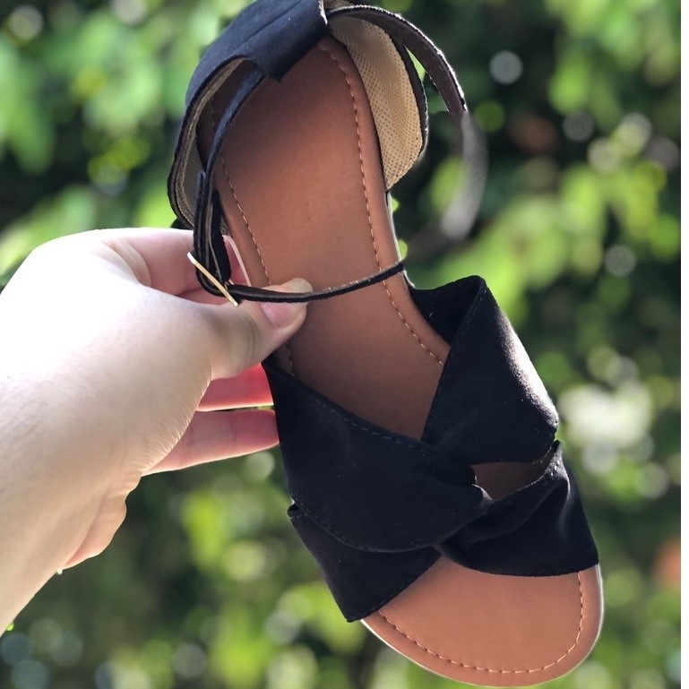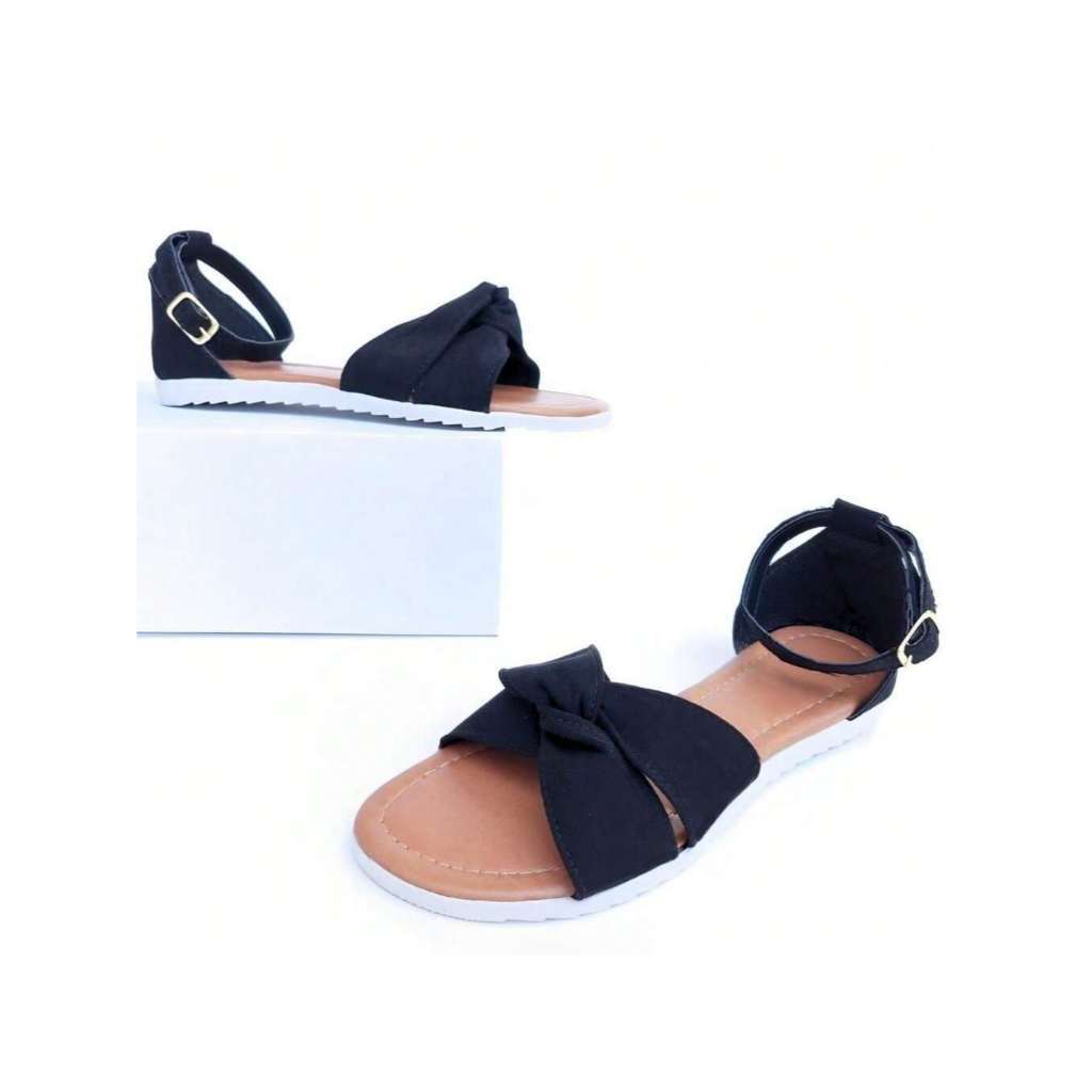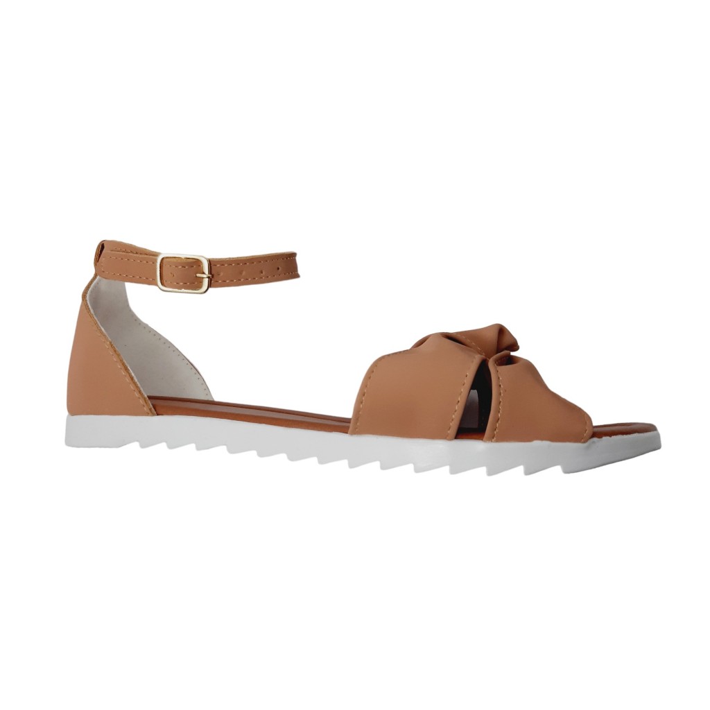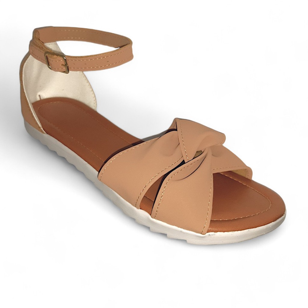 Sandália Feminina Rasteirinha Feminina Flat Tiras Cruzada Detalhe Nó e Fechamento de Cinto Fivela Solado Antiderrapante