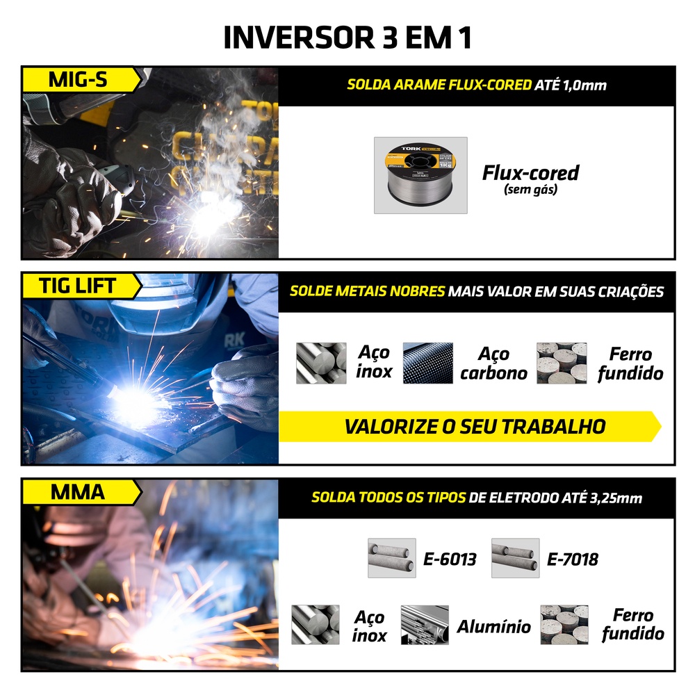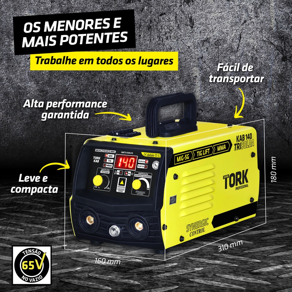 Inversor Solda Mig Eletrodo Tig 140A 220V Com Mascara Arame Esquadro Tork