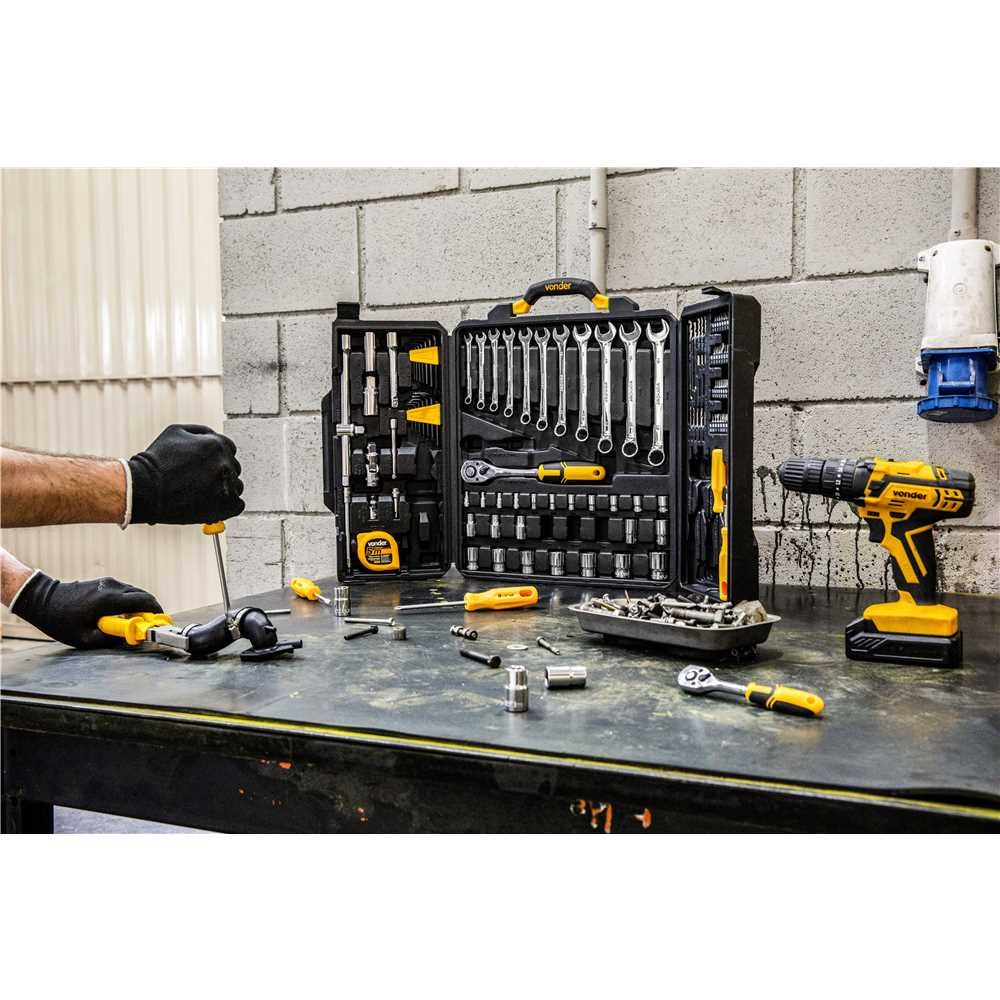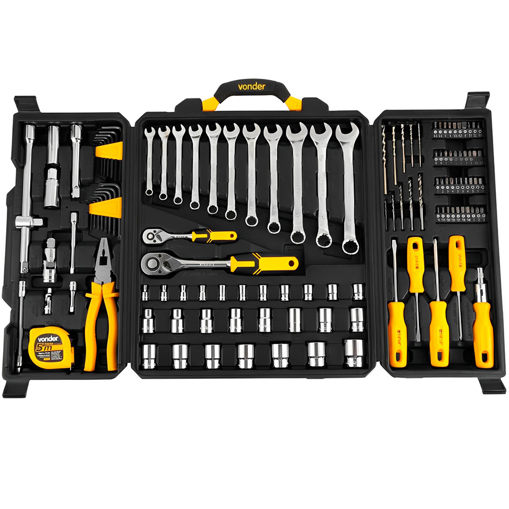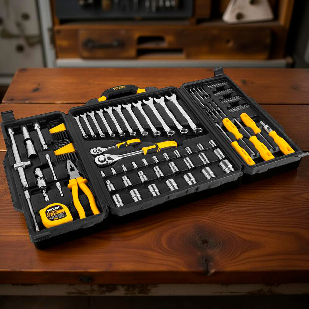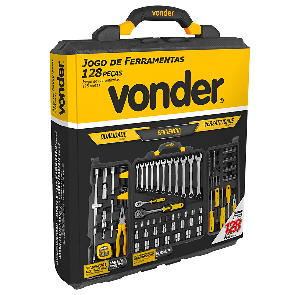 Kit Jogo de Ferramentas Profissional 128 Peças Maleta Reforçada Elétrica Mecânica Manutenção Vonder