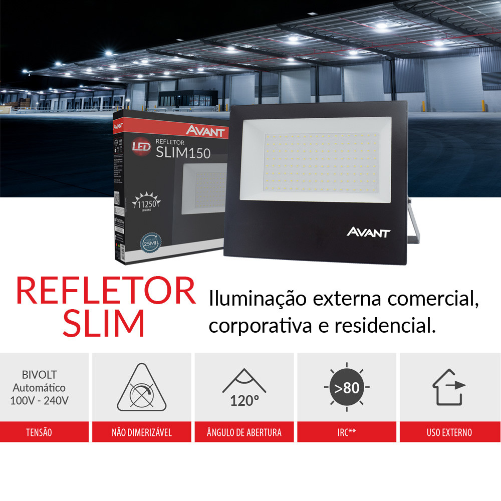 Refletor Led 150w Bivolt Branco Frio 6500k Comércio Avant