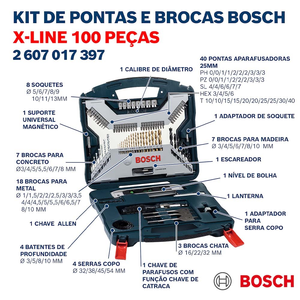 Kit Bosch 100 Peças X-Line com Maleta – Eficiência em Cada Aplicação
