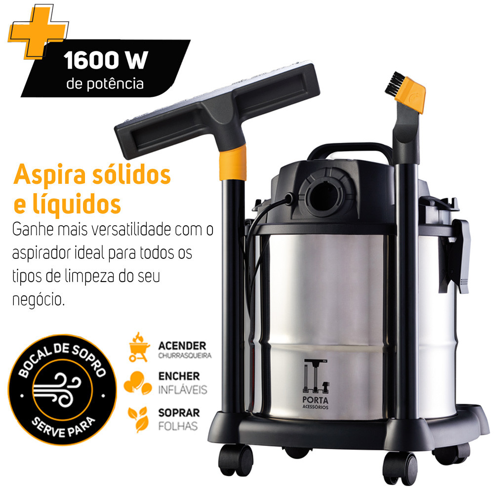 Aspirador de Pó e Água Profissional Barril Inox 20 Litros 1600W Wap
