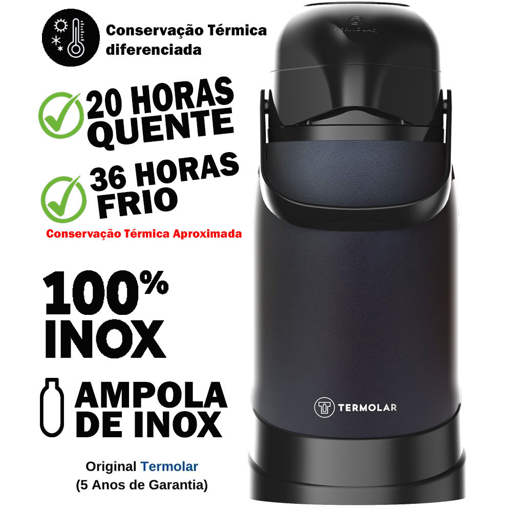 Garrafa Térmica Inquebravel 100% Inox Revolution 1.2l Com Bomba Termolar