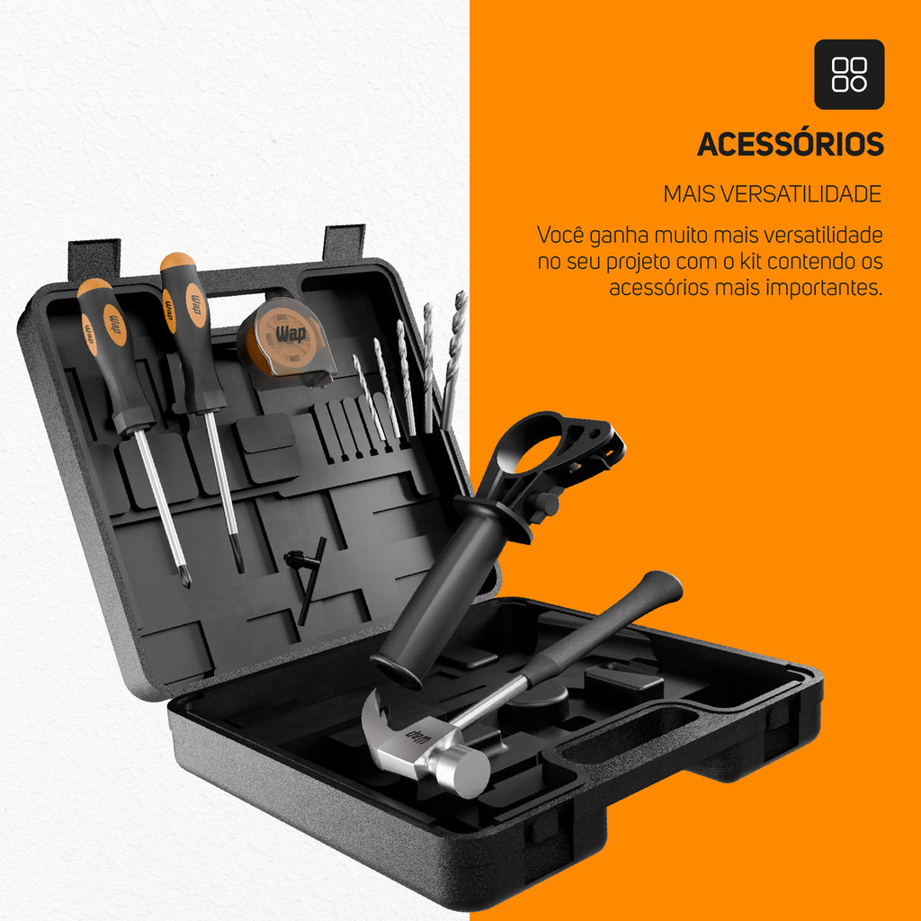 Kit Ferramentas Parafusadeira Furadeira Impacto com Serra Tico Tico Maleta Martelo Broca Wap