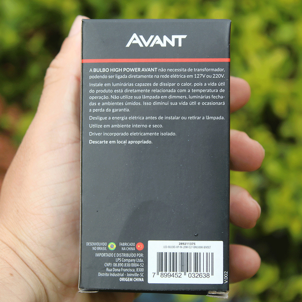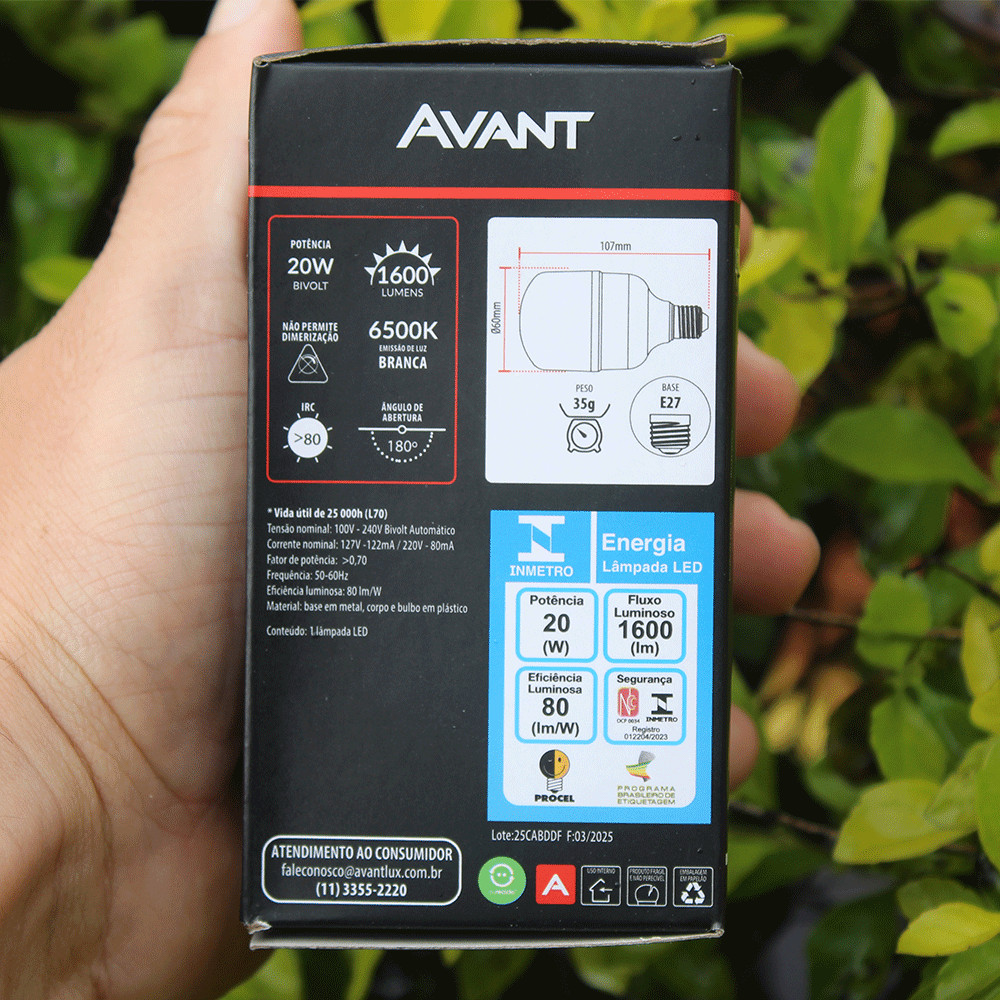 Lâmpada Bulbo Led 20W Luz Branco Frio 65000K Bivolt 127v 220v Soquete E27 Avant