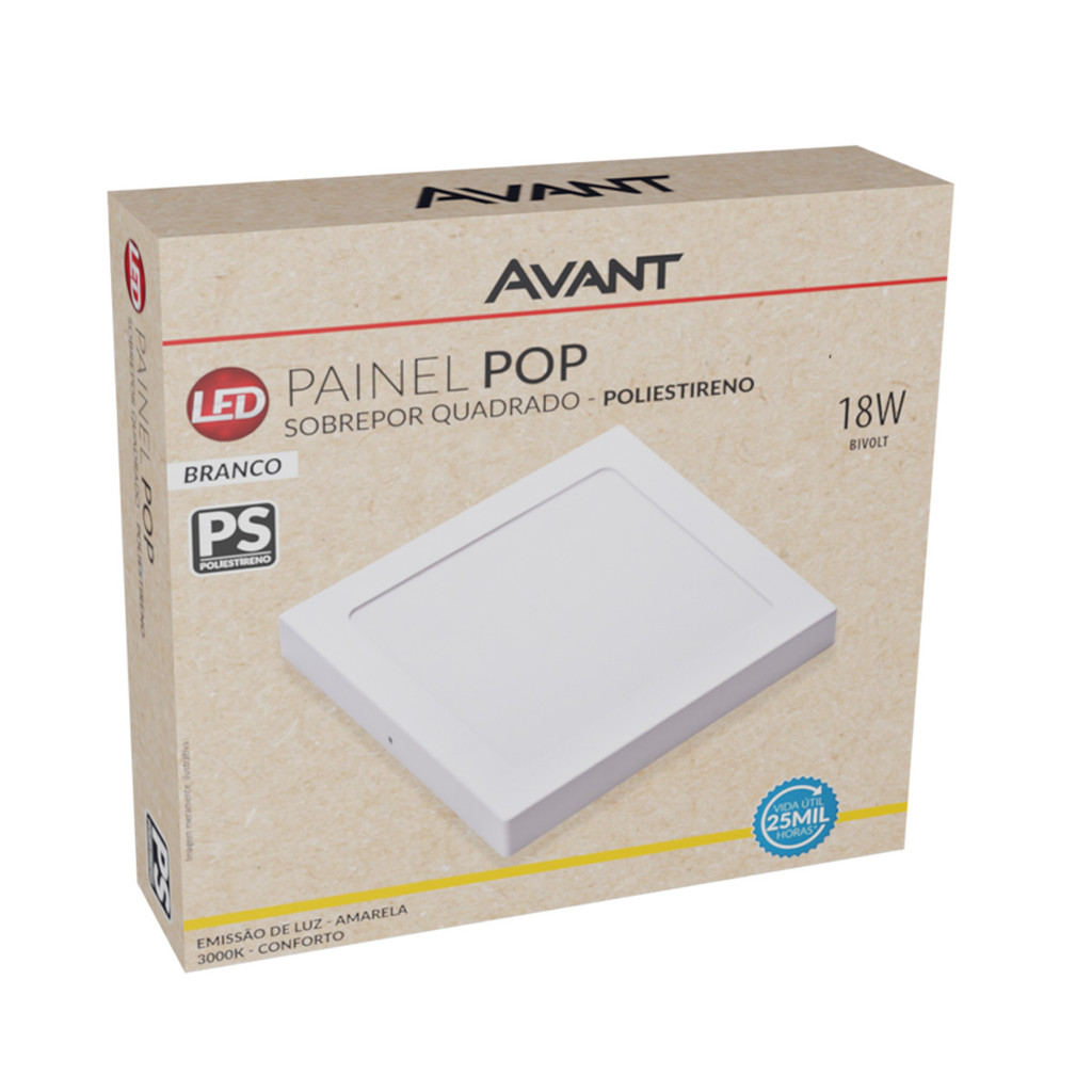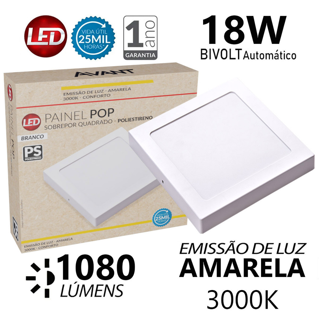 Kit 4 Luminária de Teto Painel Plafon 18W Sobrepor Branco Quente 3000K Avant