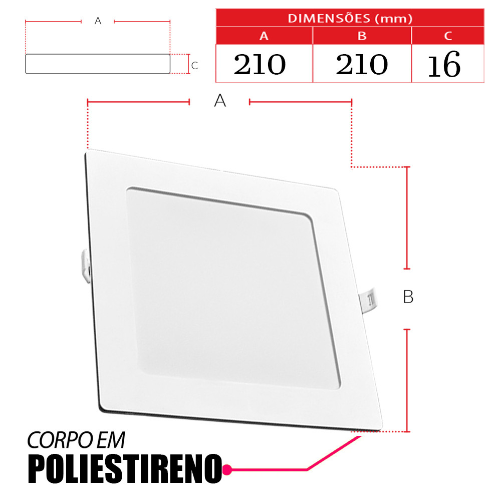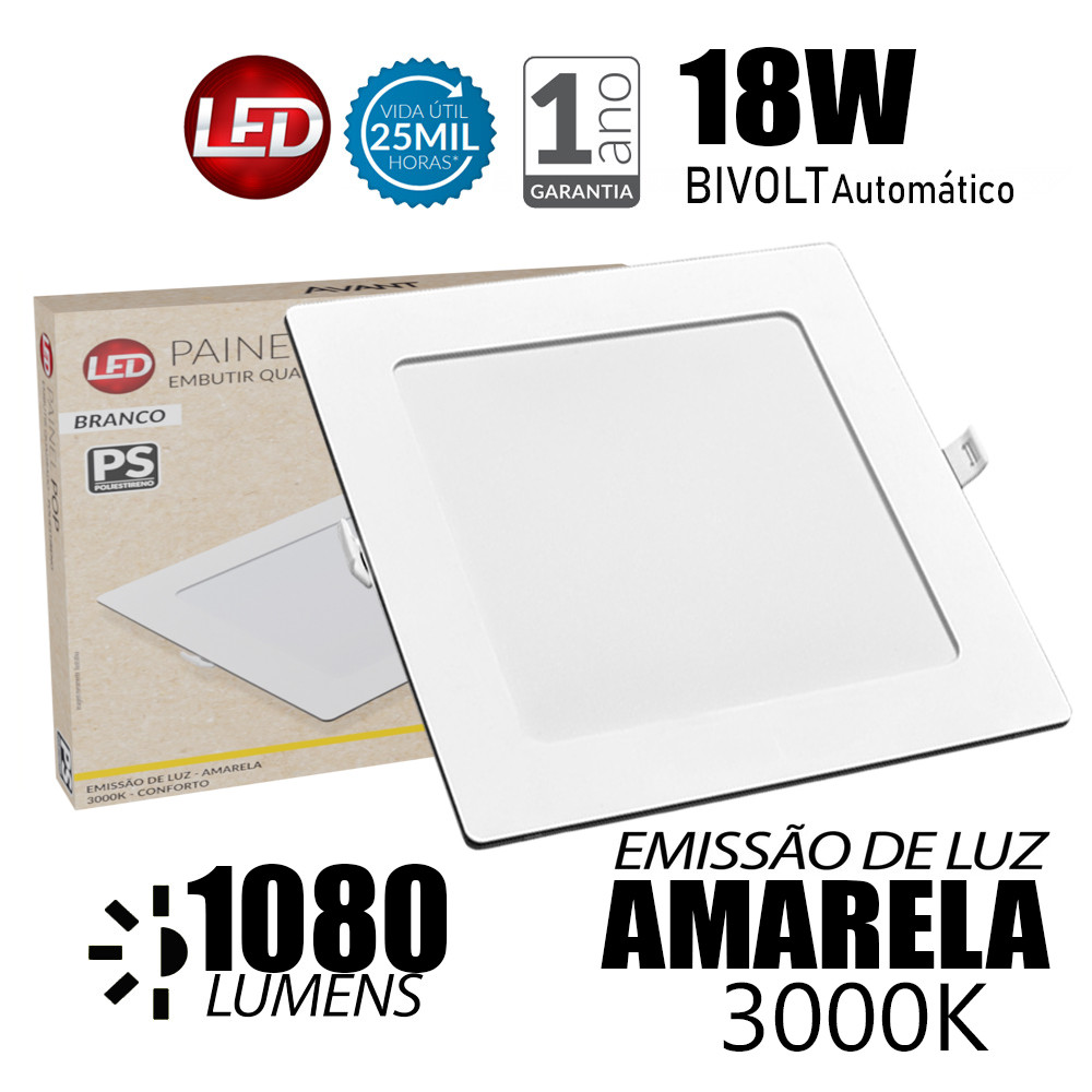 Kit 2 Painel Plafon Quadrado Embutir 18W Luz Amarela 3000K Luminária de Gesso Forro