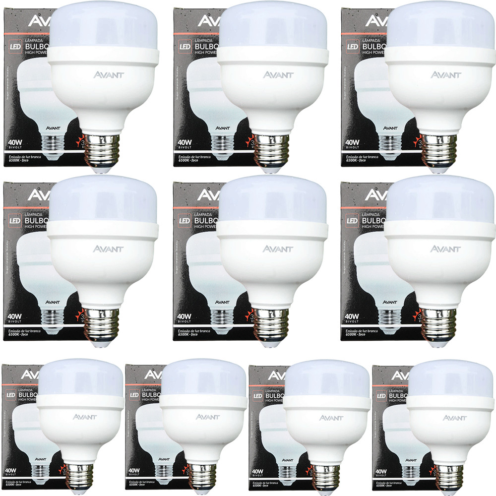 Kit 10 Lâmpada Bulbo 40W Soquete E27 Branco Frio 6500K Bivolt 127v 220v Led Avant