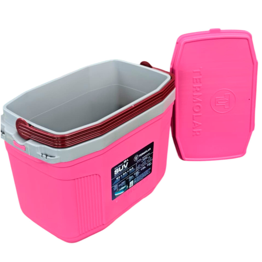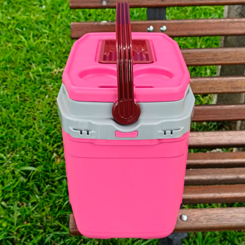 Caixa Cooler Térmico 20 Litros Rosa Termolar com Tampa Removível Porta Copos e coisas Integrado