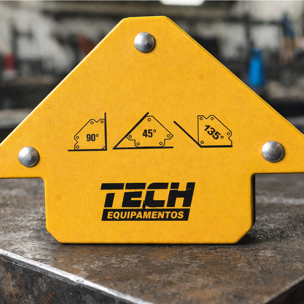 kit 5 Esquadro Magnético TECH 12kg Solda Multiângulos 30° 45° 135° Aço Reforçado Dupla Face