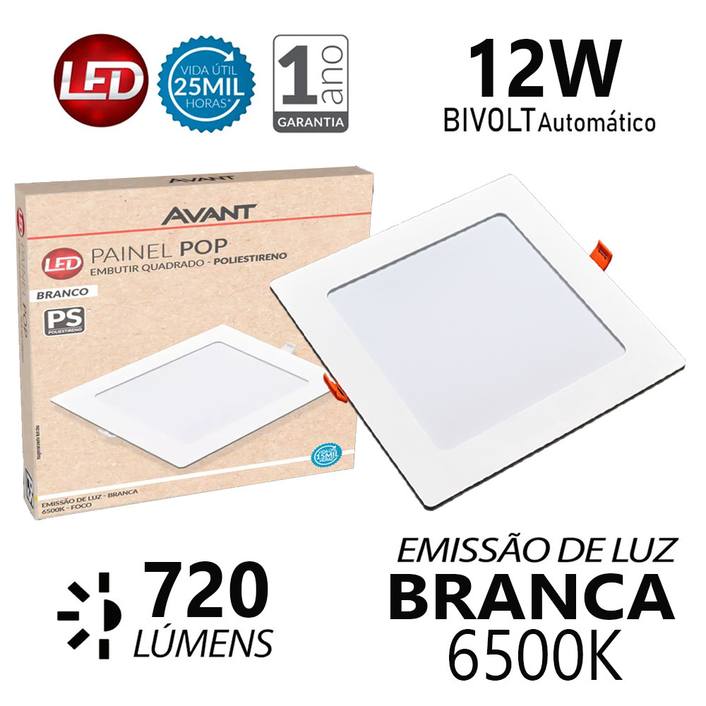 Kit 4 Painéis Plafon Quadrado Embutir 12W Luz Branca 6500K Luminária de Gesso Forro 127v 220v Avant