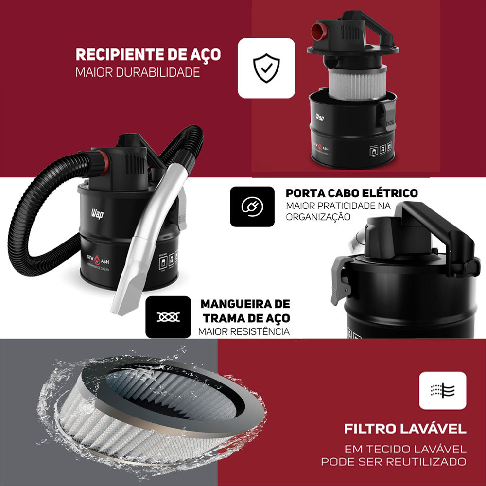 Kit Aspirador de Cinza WAP GTW ASH 1400W com Lavadora de Alta Pressão Vonder LAV1300 1200W