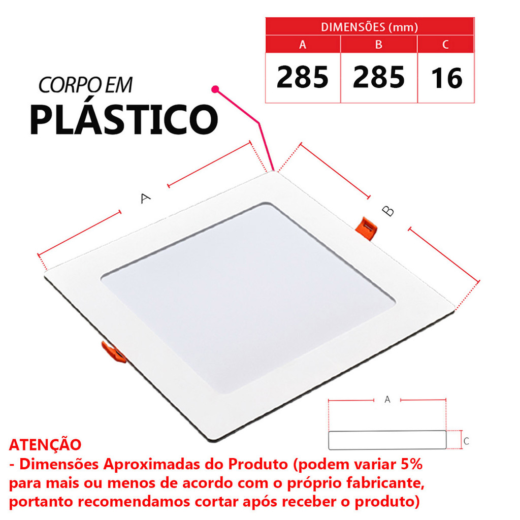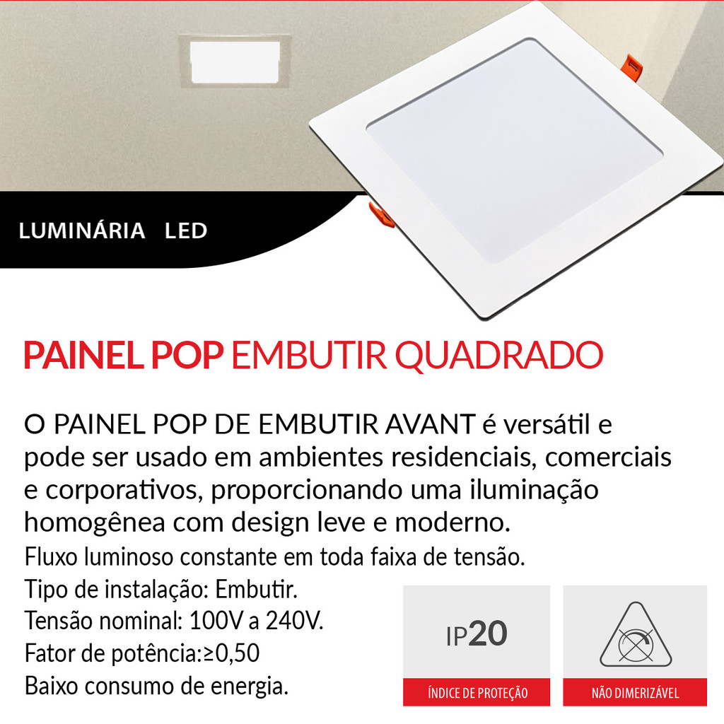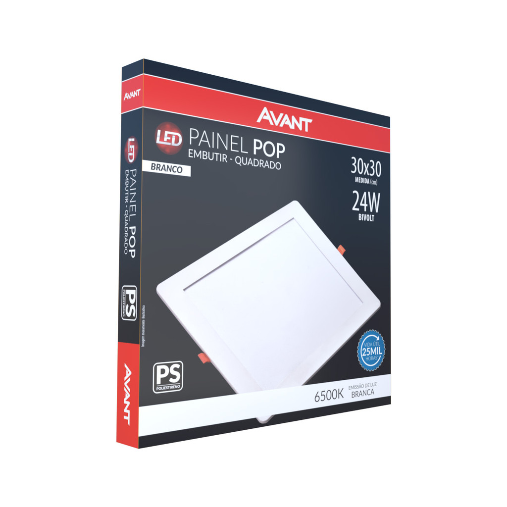 Kit 5 Painel LED Avant 24W 6500K Embutir Quadrado 1680lm Bivolt