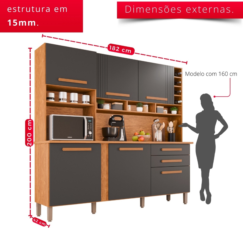 Cozinha 6 Portas 2 Gavetas Amanda - Tudo de Móveis
