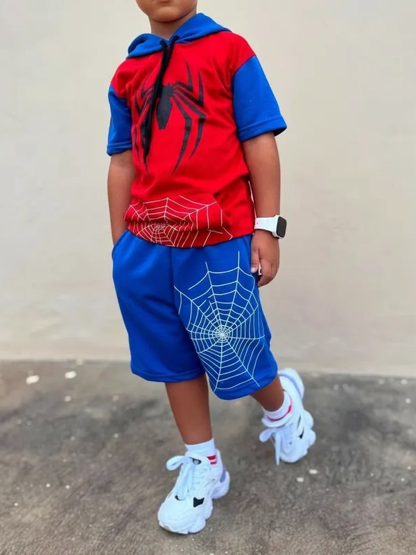 Camiseta Infantil Spiderman + Bermuda Homem - aranha personagens roupa de criança temática