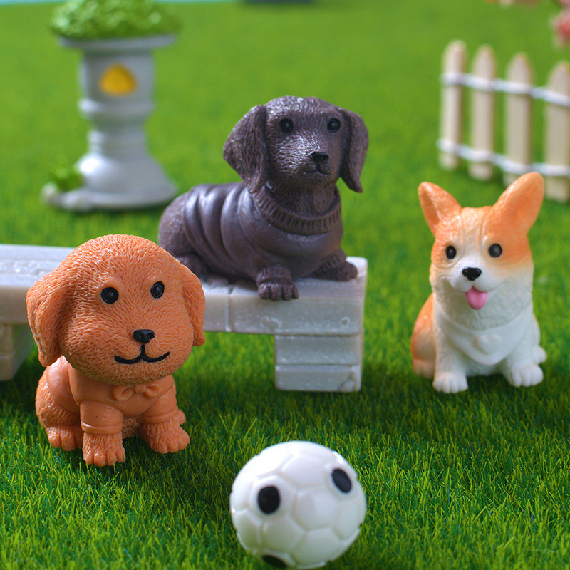 3 peças miniaturas de estatuetas fofas simulação de cachorro pomerânia micro ornamentos de paisagem para decoração