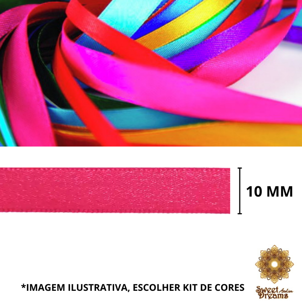 FITA DE CETIM N 2 10MM KIT DE CORES COM *10 METROS (5 CORES, 2 METROS DE CADA COR)
