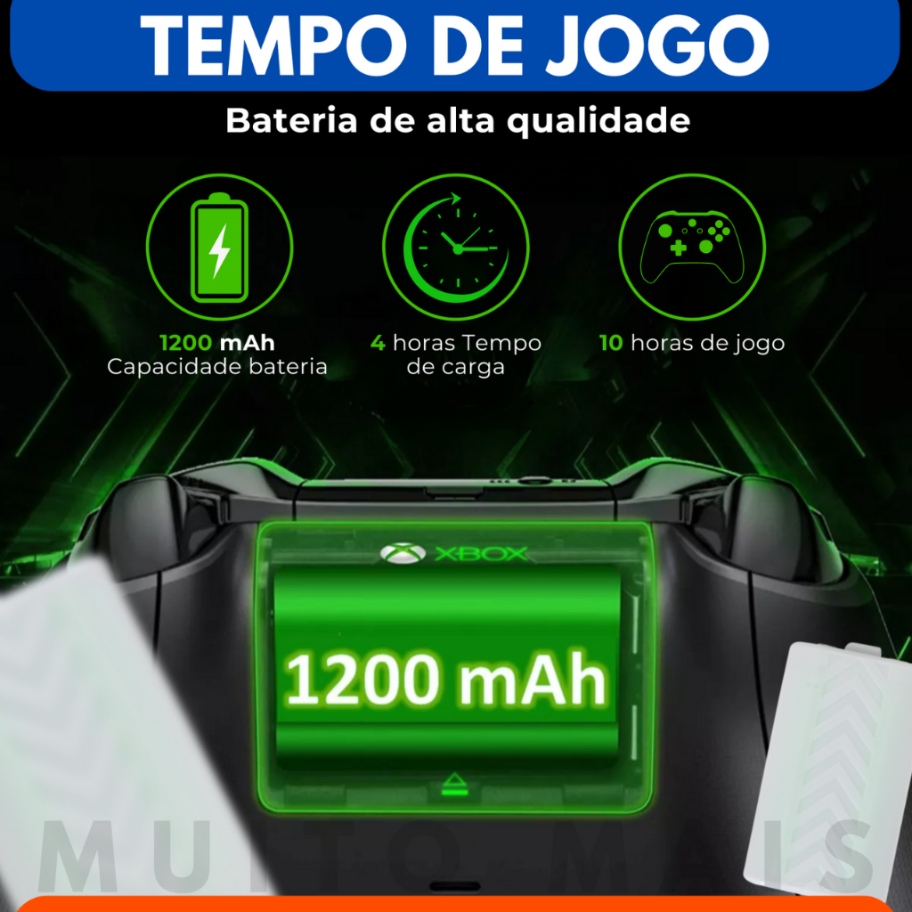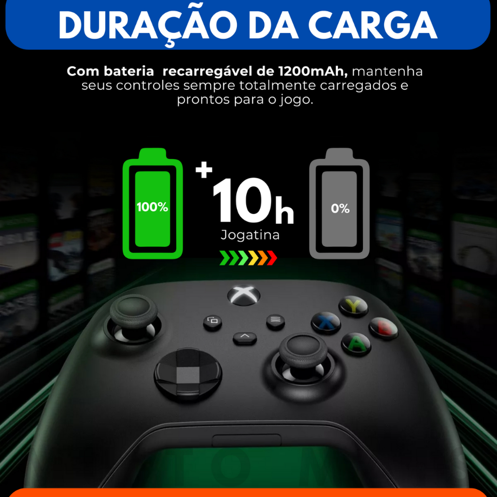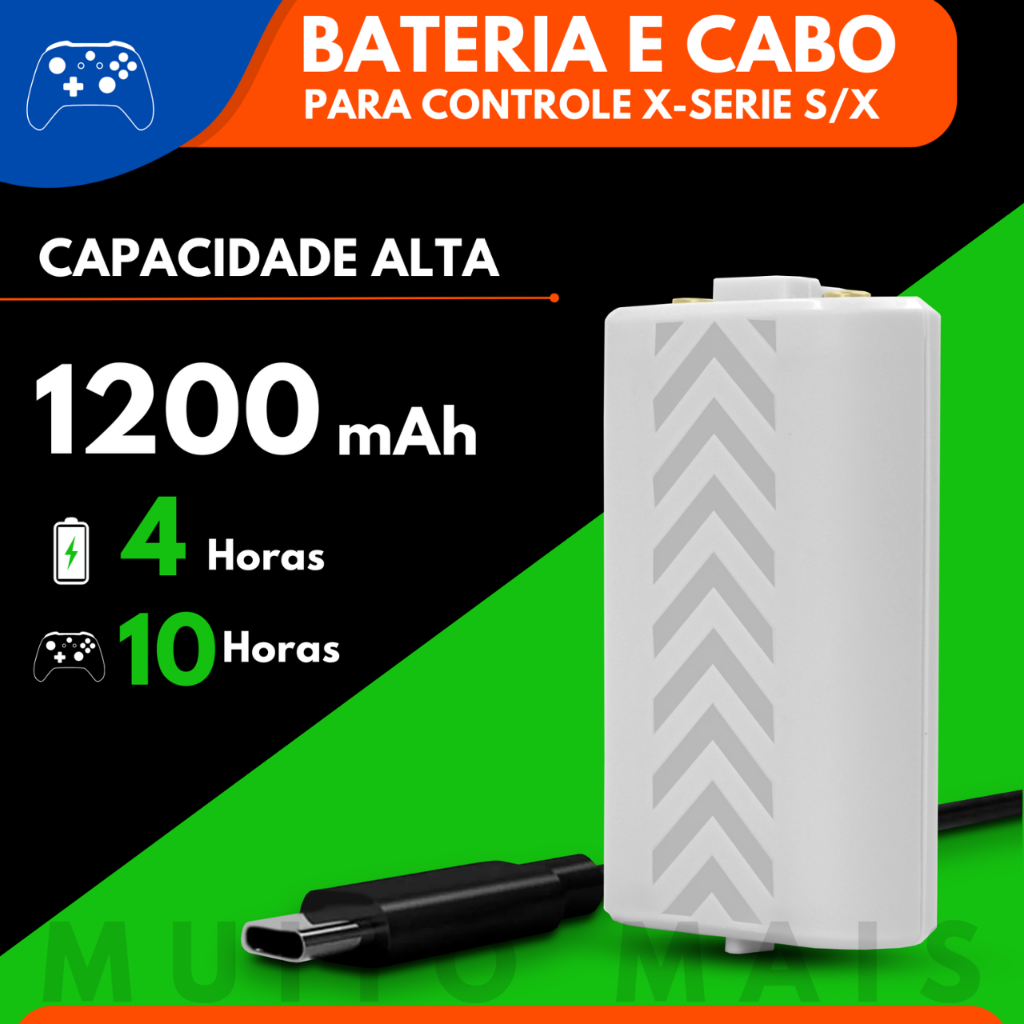 Bateria Para Controle Xbox Séries S X 1200mah Cabo Carregador 3 Metros